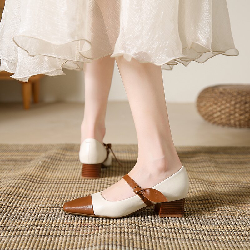 真皮复古小香风玛丽珍鞋女方头粗跟单鞋高跟鞋羊皮韩版软底新款
