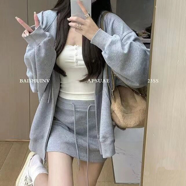 灰色运动短裙女早春新款高腰显瘦半身裙A字包臀裙小个子裙裤