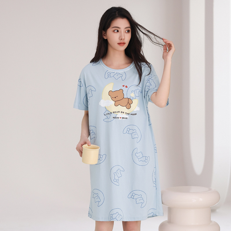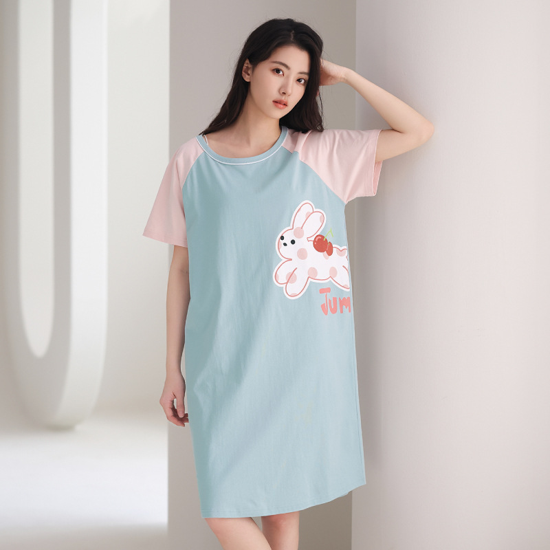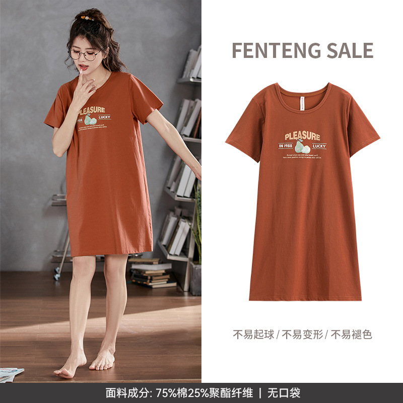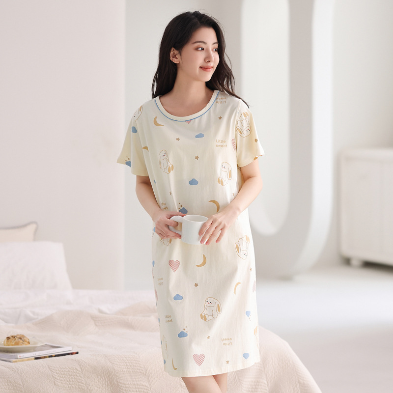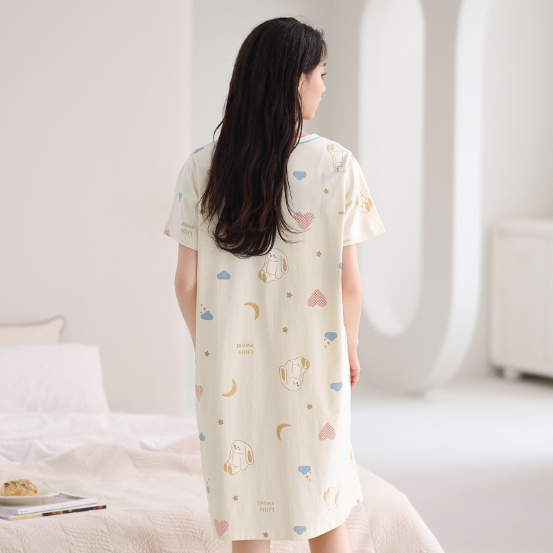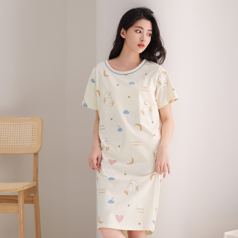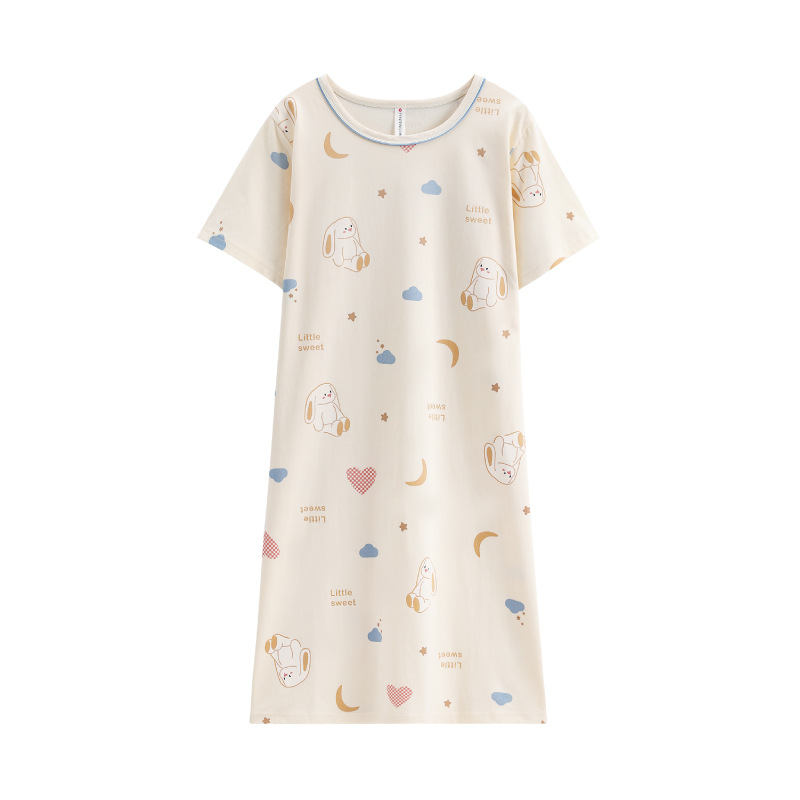 芬腾【全棉软感】睡裙女夏季纯棉睡衣裙甜美少女可爱家居服中长裙