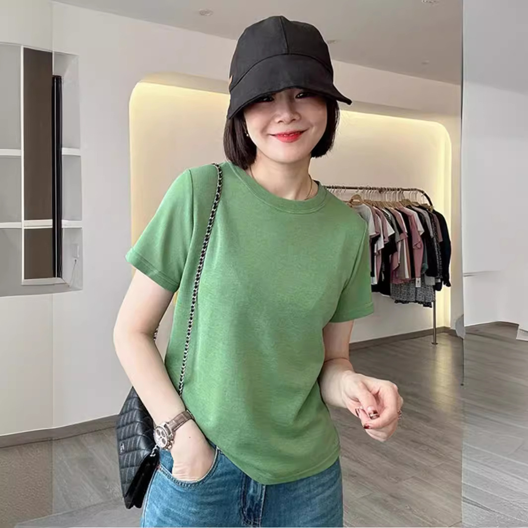 简约t恤女夏季新款宽松显瘦圆领基础款上衣棉质减龄短袖打底体恤