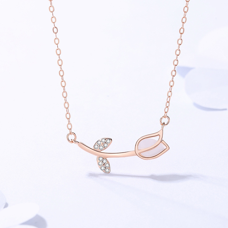 达米拉韩版S925纯银郁金香项链女百搭猫眼石玫瑰花朵锁骨链ins风