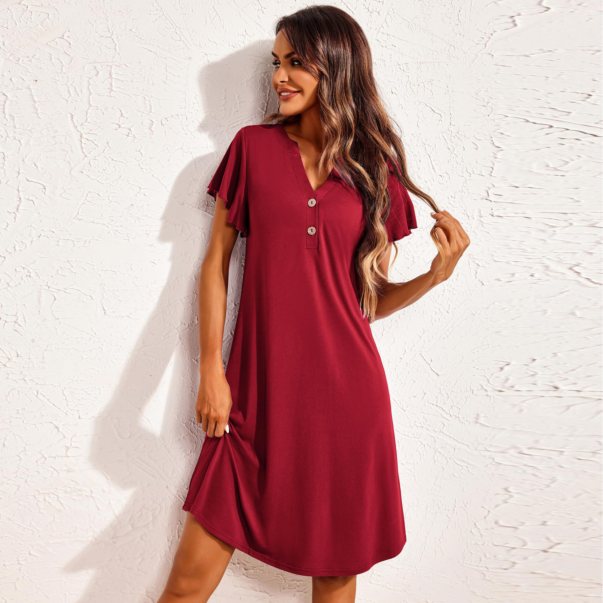 春夏欧美女士家居服睡裙莫代尔短袖V领亚马逊跨境居家睡衣连衣裙