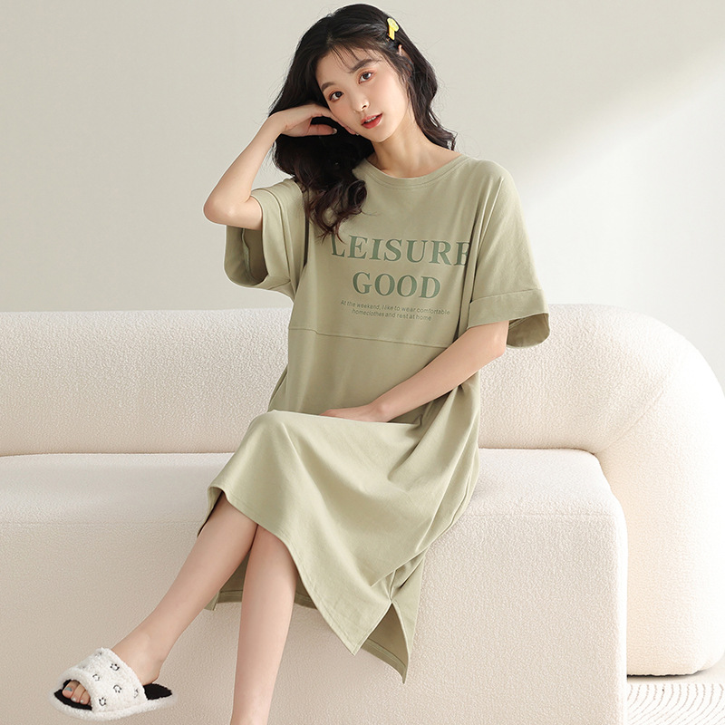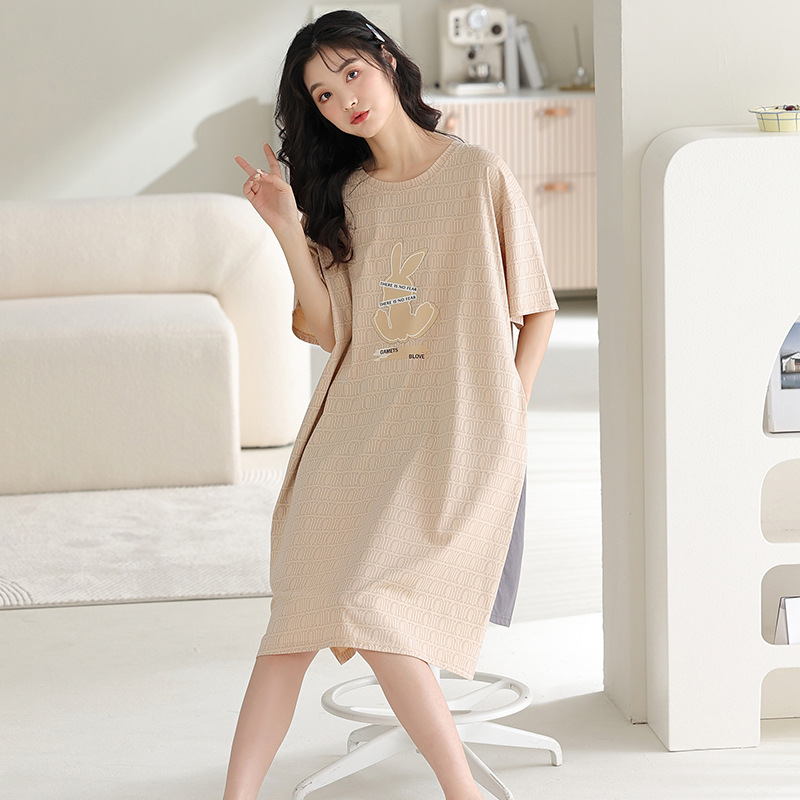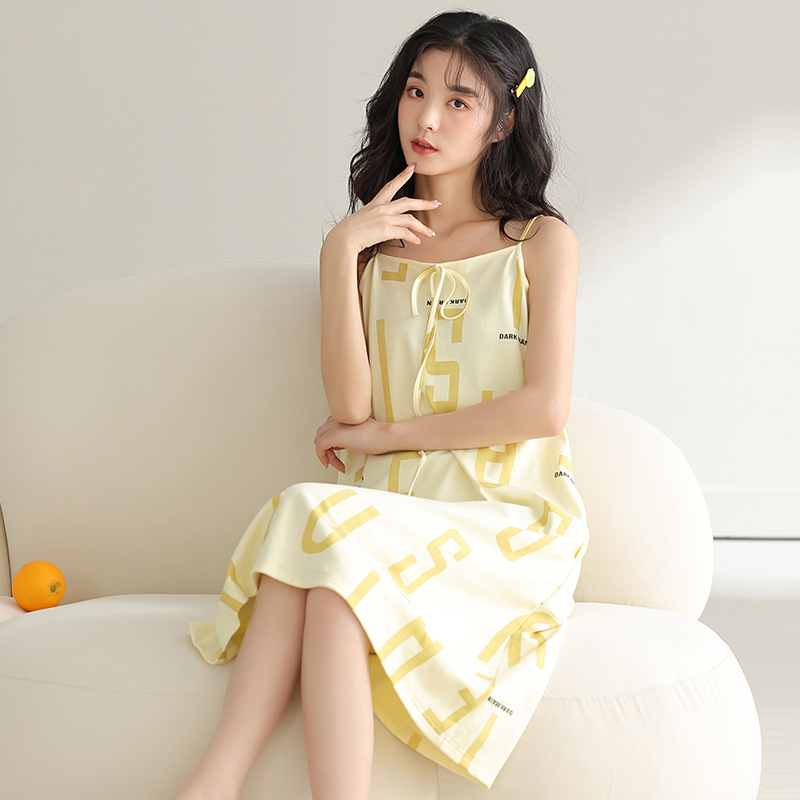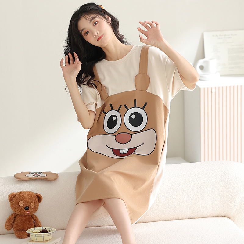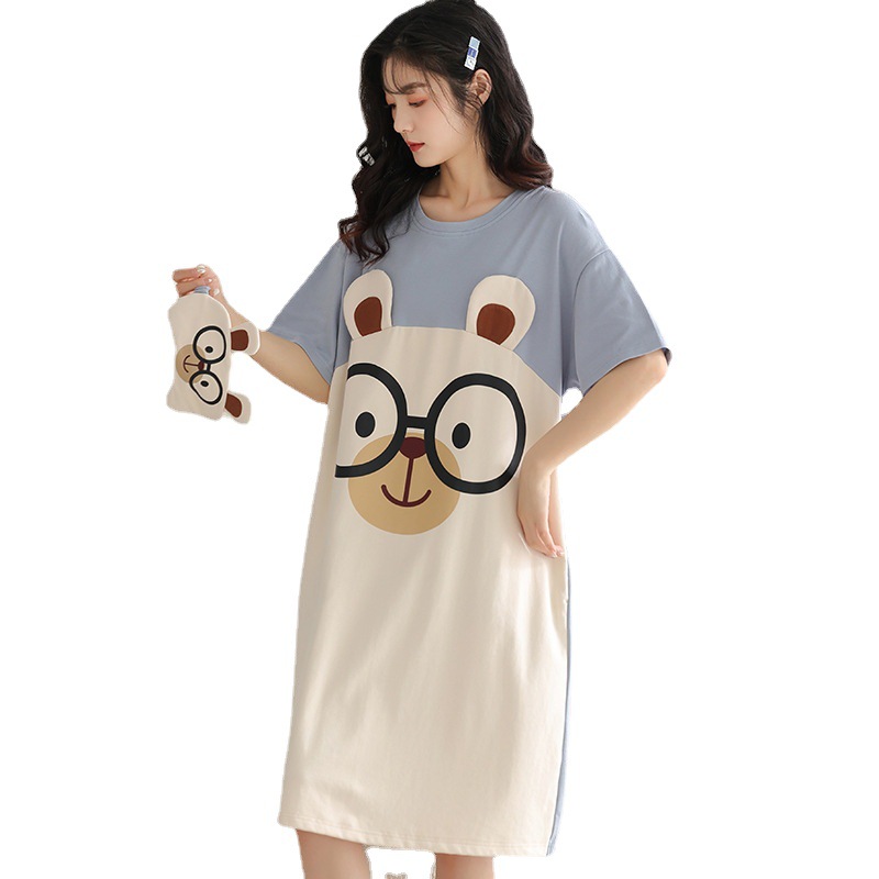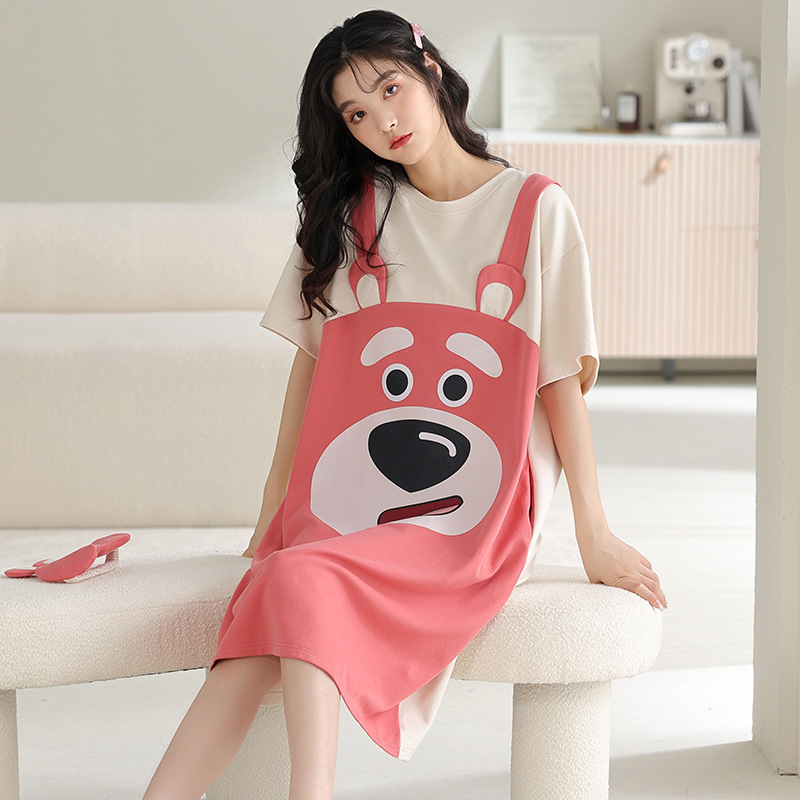 夏季新款女士睡裙纯棉宽松休闲可爱短袖吊带连衣裙卡通薄款家居服
