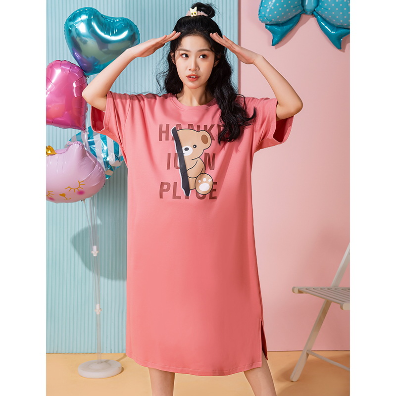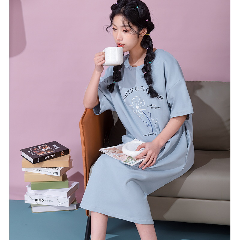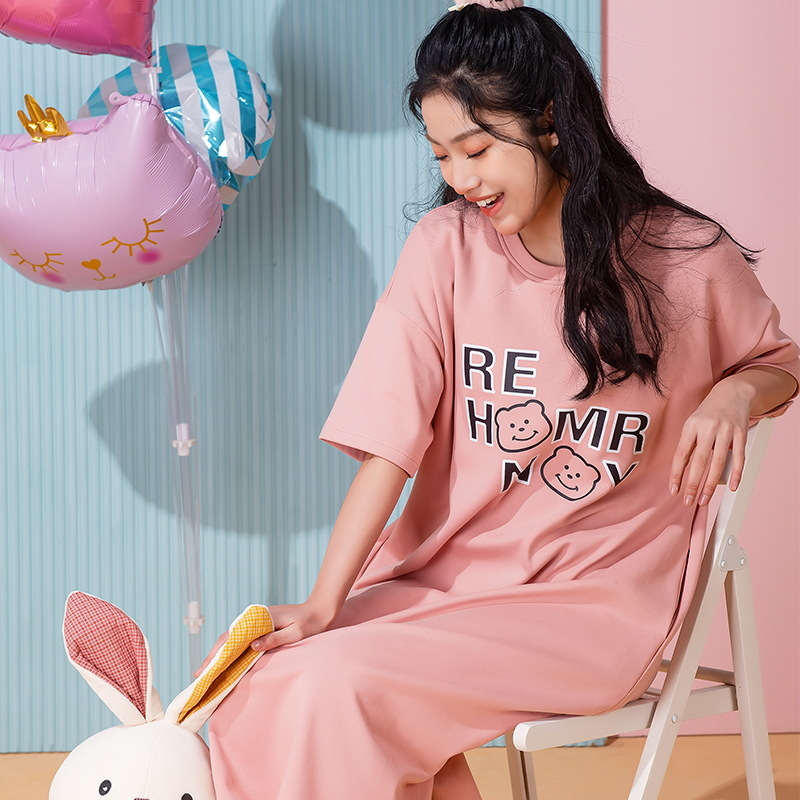 睡裙女夏天中长款短袖薄款网红风夏季睡衣女年新款春秋款