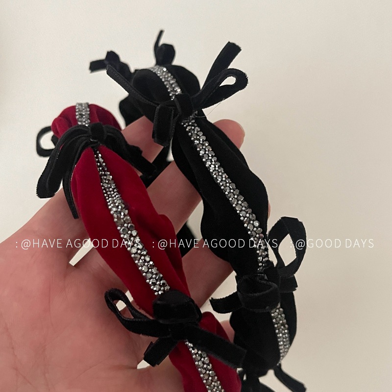 甜美丝绒蝴蝶结满钻发箍头箍小众设计感个性发饰高颅顶头饰气质女