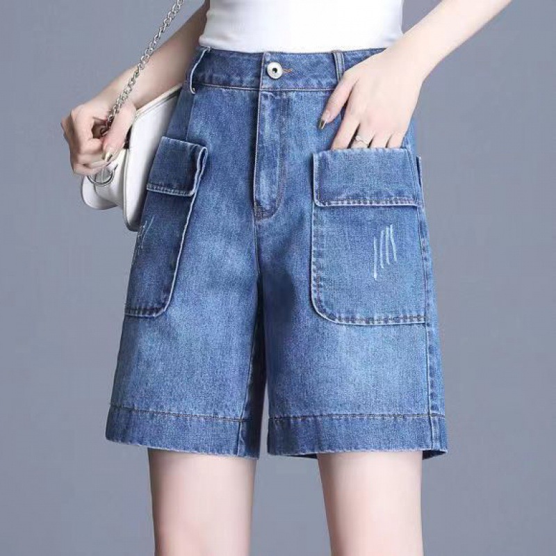 西蒙莱纳夏季新款牛仔短裤女高腰显瘦直筒a字阔腿时尚韩版洋气五