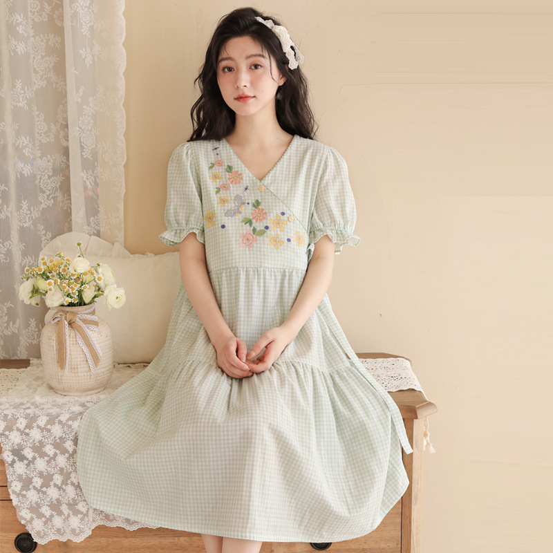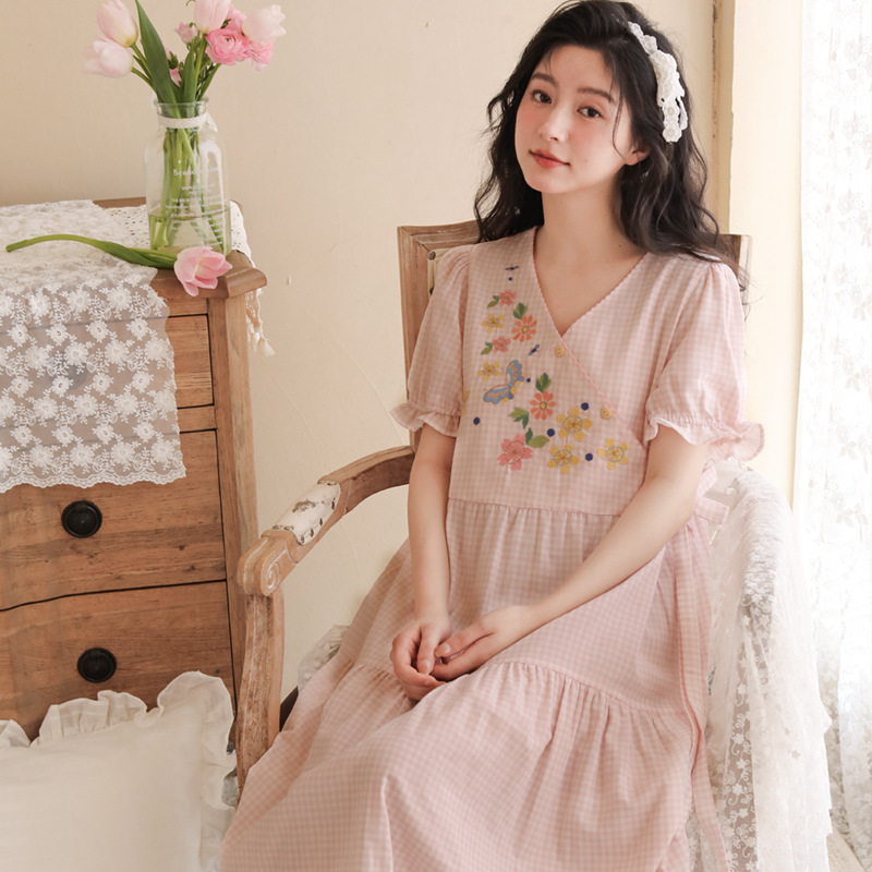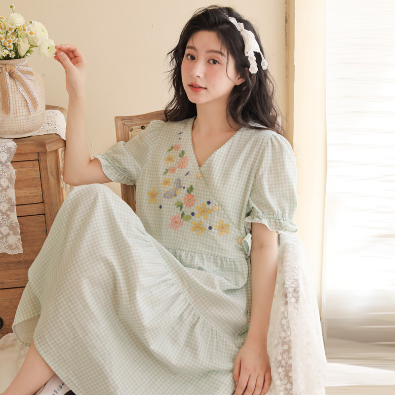 睡裙纯棉夏季新款女士和服宽松家居服连衣裙薄款睡衣女纱布睡衣裙
