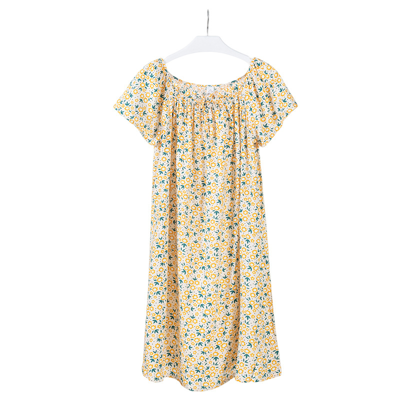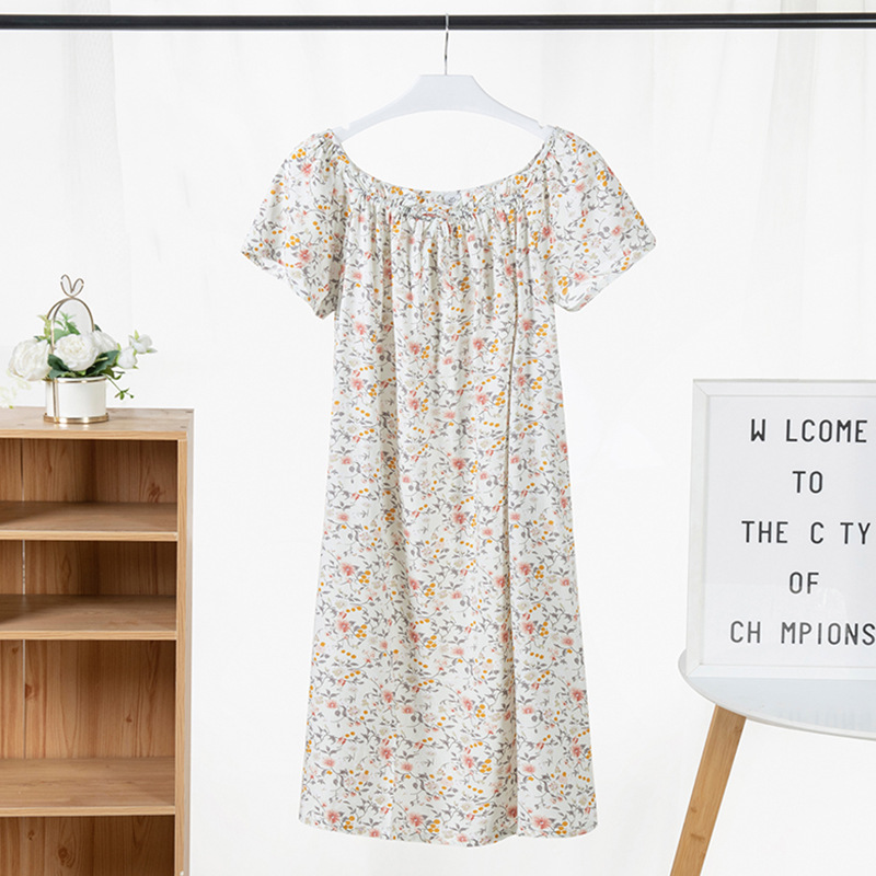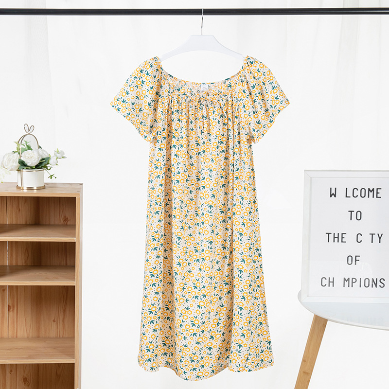 碎花棉绸睡裙女夏季薄款睡衣裙短袖印花韩版圆领宽松绵绸睡裙