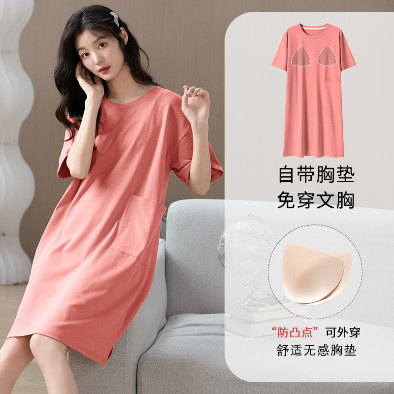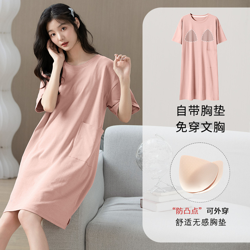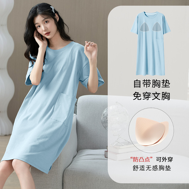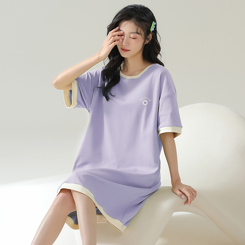 夏季睡衣女新款睡裙女夏季短袖连体圆领舒适套头女士可外穿家居服