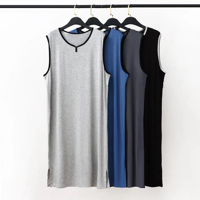 莫代尔睡裙男士夏季薄款睡衣裙连衣裙背心大码欲袍宽松家居服