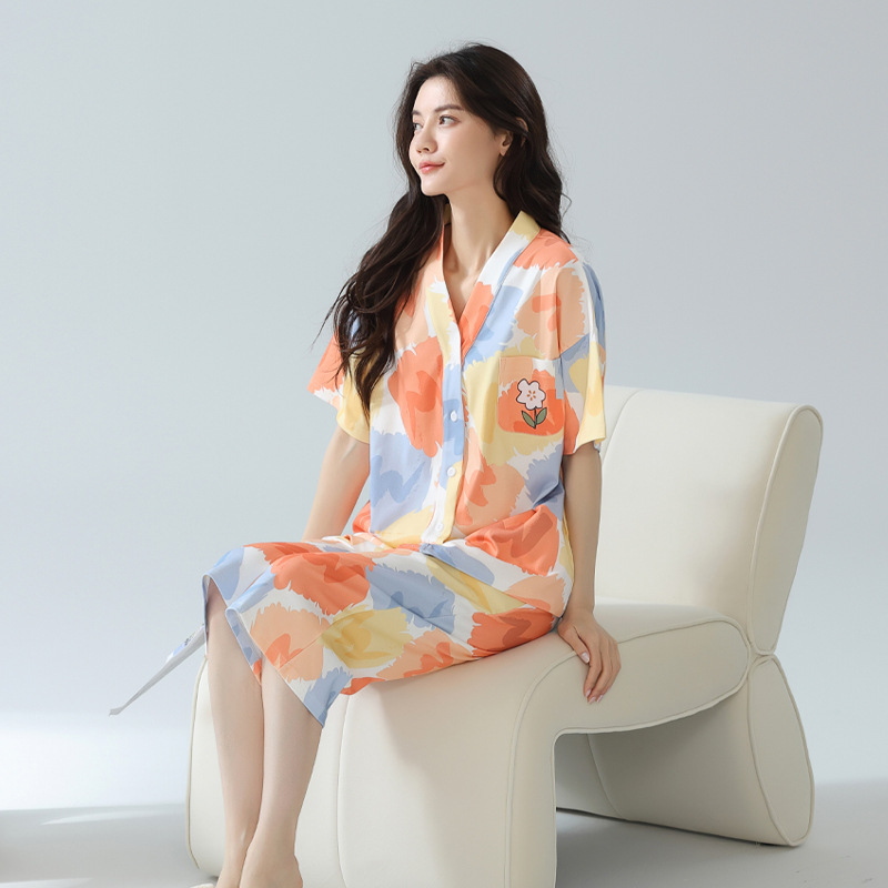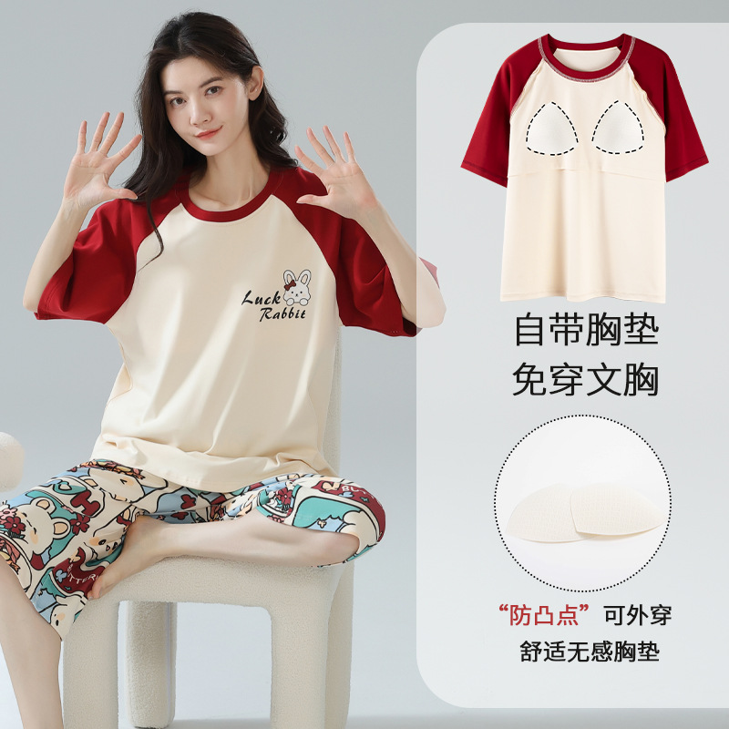 100%纯棉睡衣女夏带胸垫短袖短裤睡裙家居服春秋宽松休闲大码新款