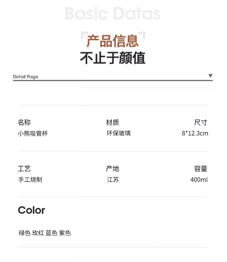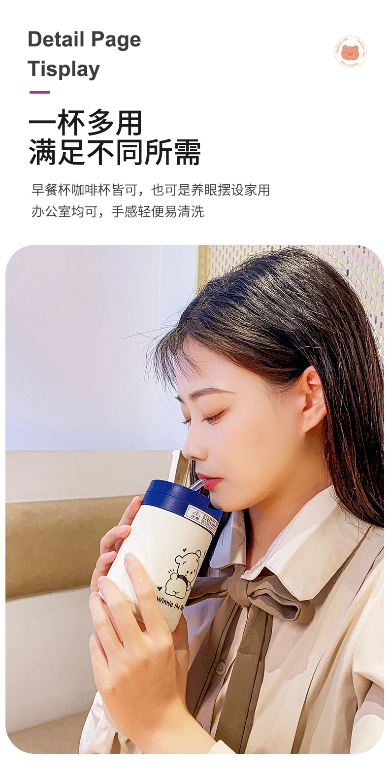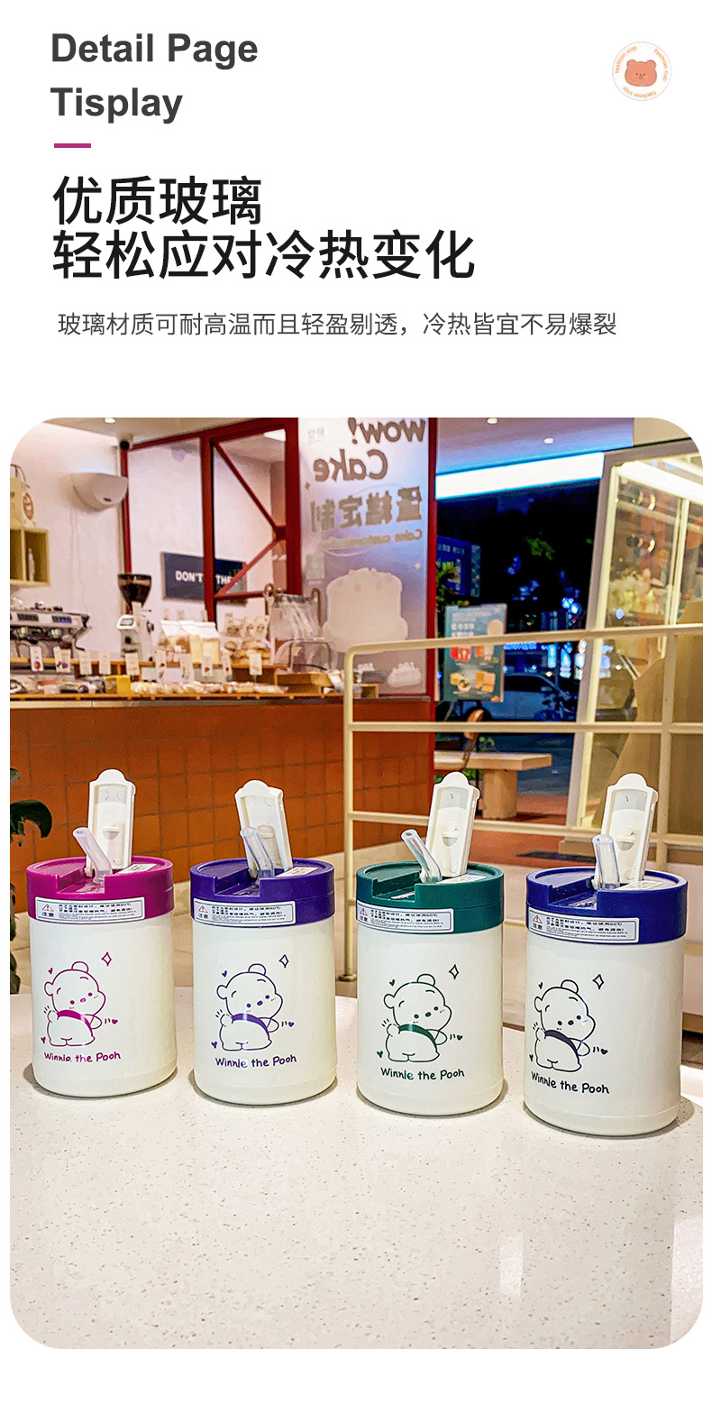 小熊吸管杯玻璃杯新品玻璃杯时尚随手双引杯吸管玻璃水杯