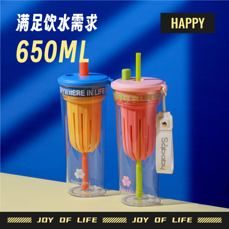 善趣水杯大容量女生便携吸管杯高颜值茶水分离泡茶tritan杯子夏