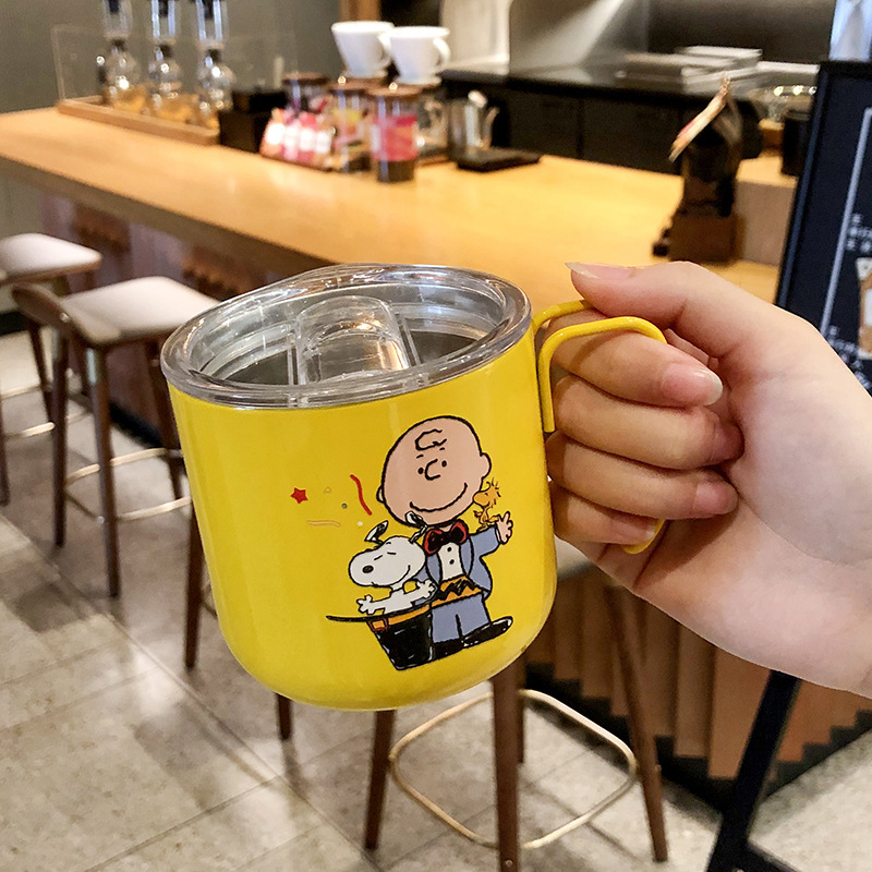 保温杯304不锈钢史努比手柄咖啡杯卡通礼品真空保温水杯