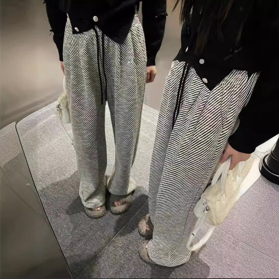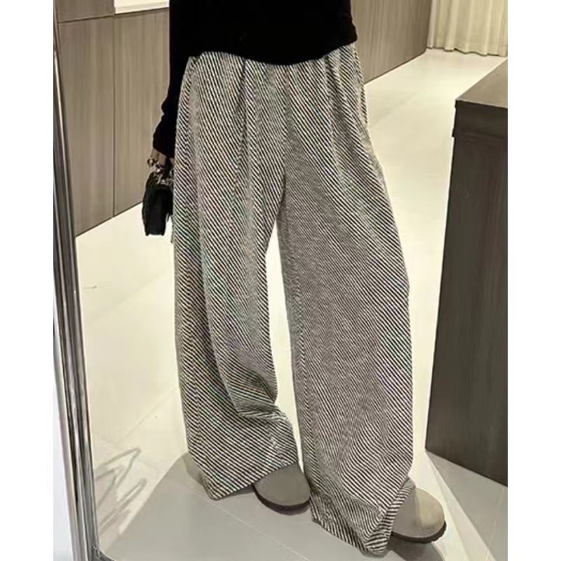 美式斜纹金丝细闪新款春夏秋宽松休闲百搭外穿直筒阔腿裤拖地