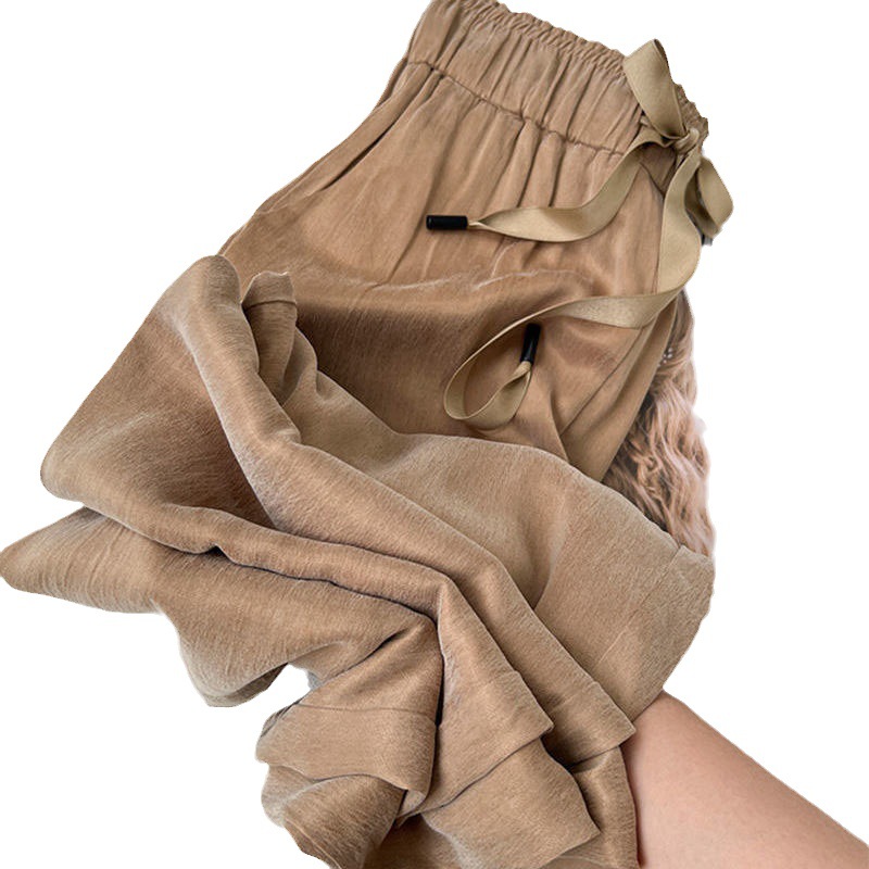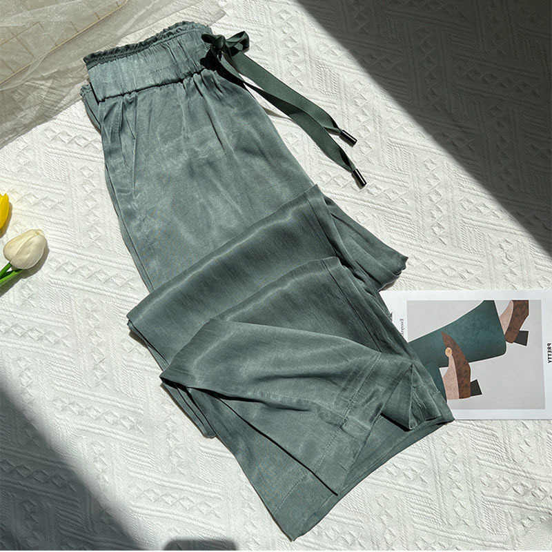 现货夏款缎面长裤休闲裤宽松纯色美拉德阔腿裤