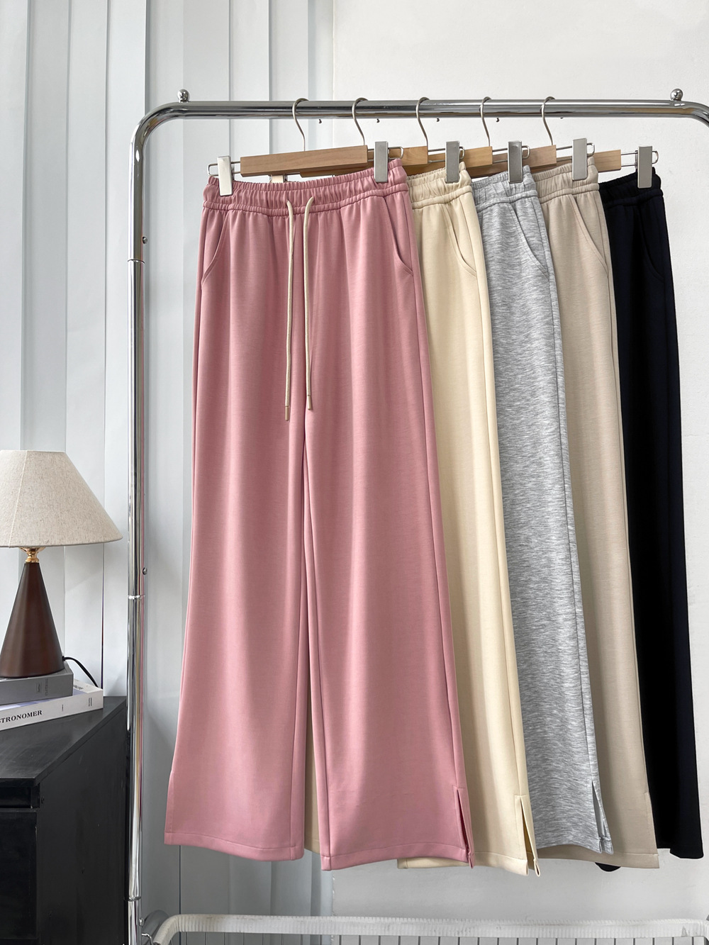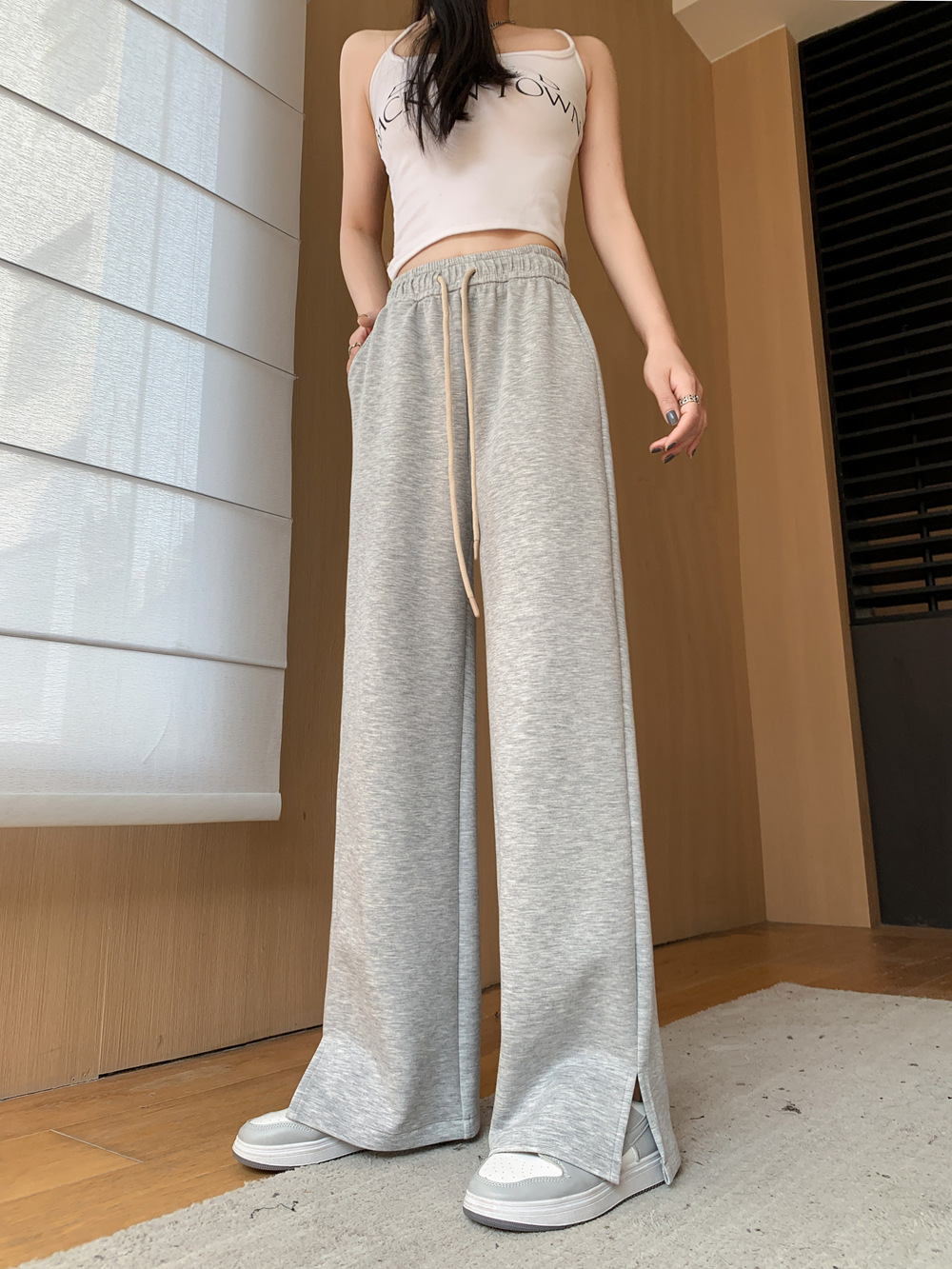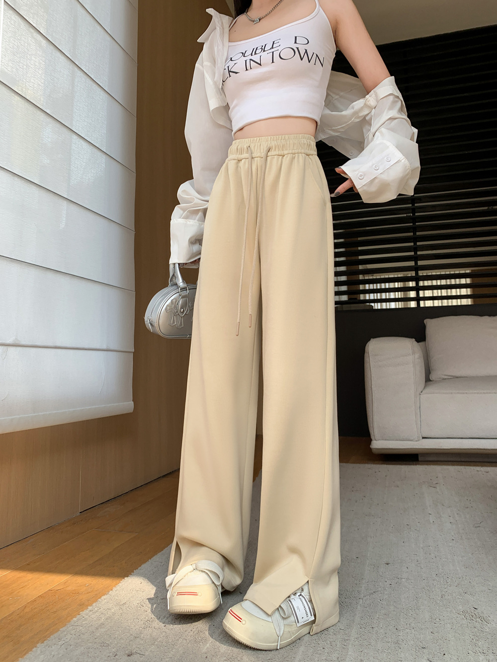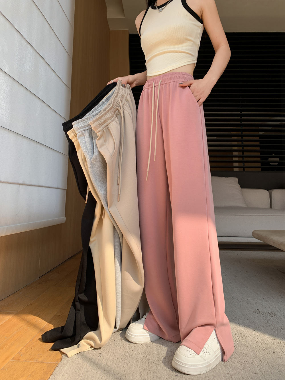 春夏新款垂感侧开叉休闲裤长裤 宽松显瘦空气棉窄版阔腿裤女