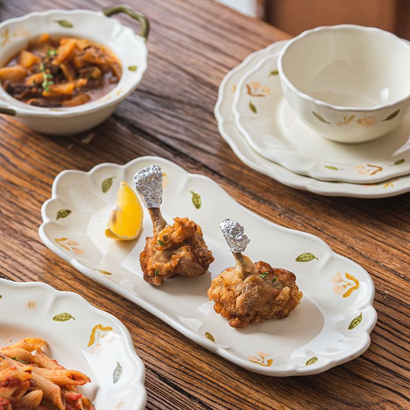 清新奶油风桔梗碗碟餐具家用饭碗汤碗菜盘鱼盘陶瓷碗盘组合釉下彩