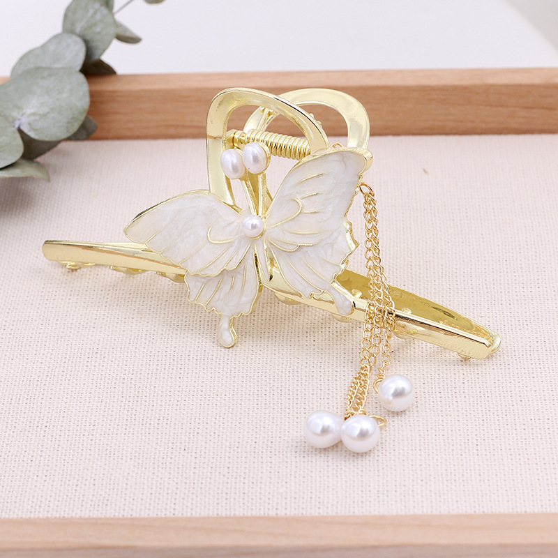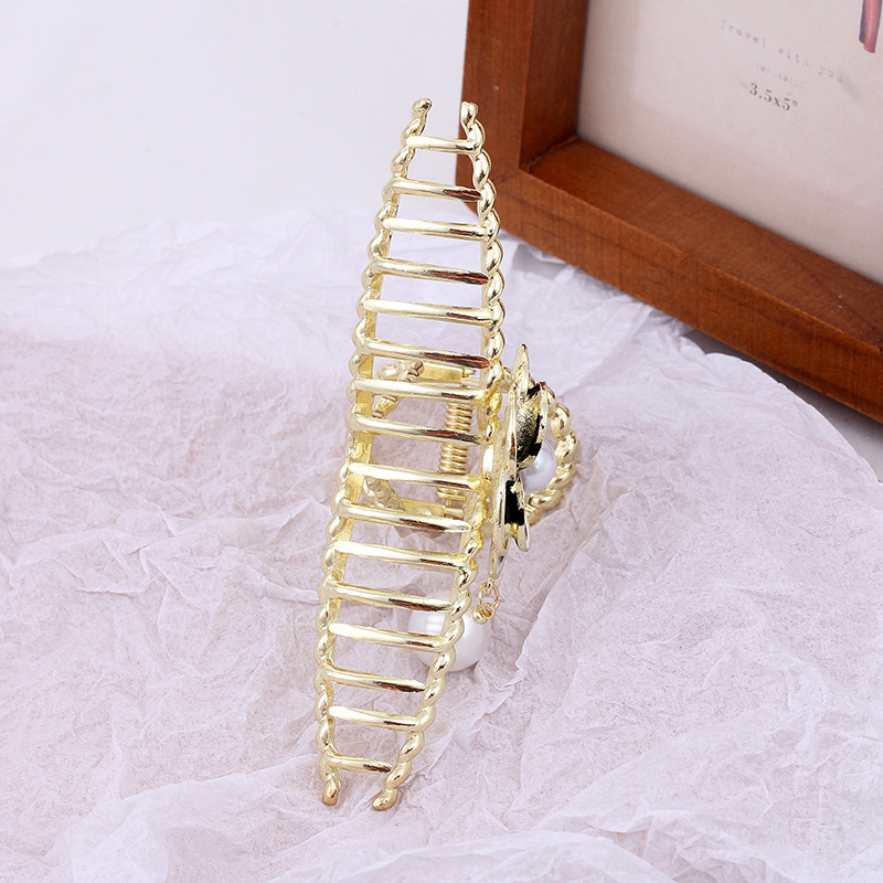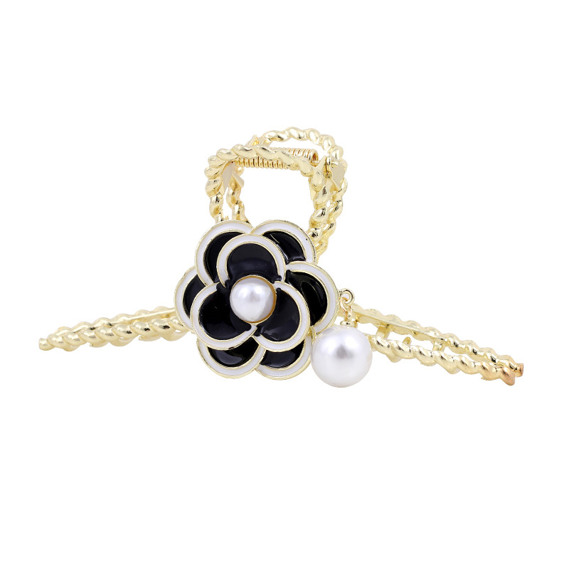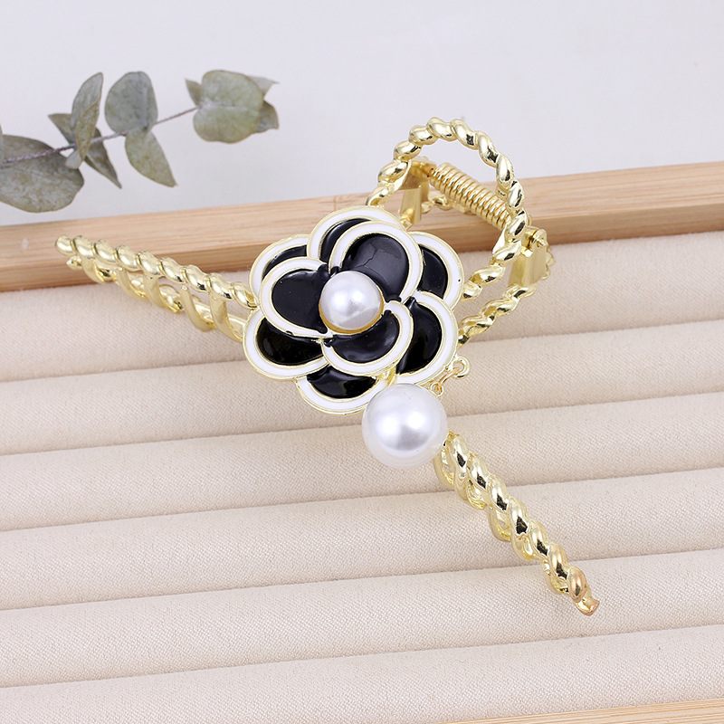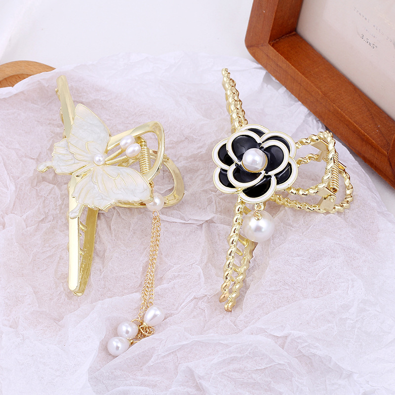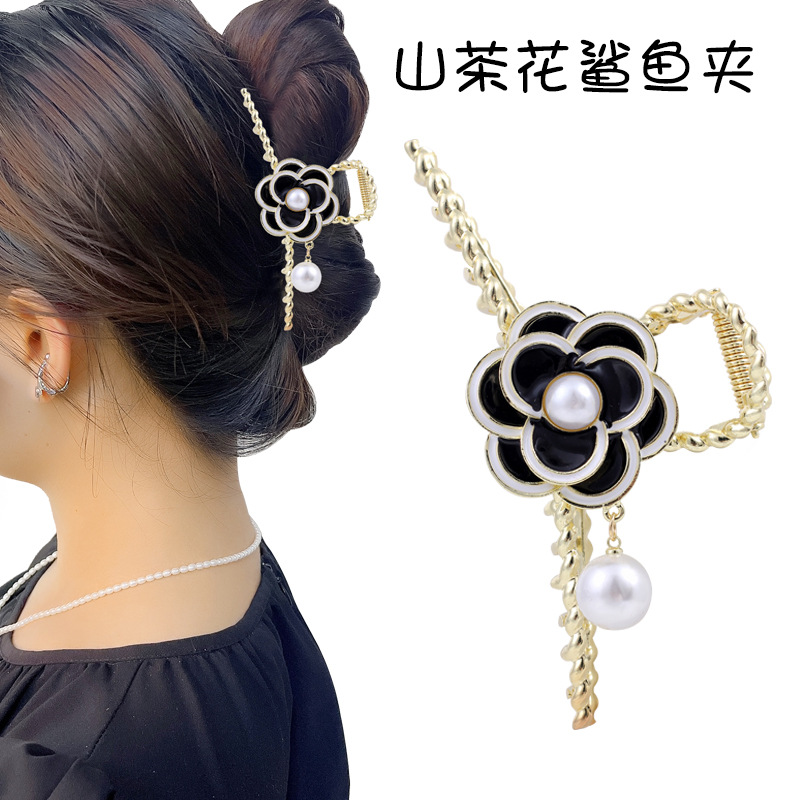 复古气质珍珠山茶花抓夹女后脑勺大号鲨鱼夹流苏蝴蝶盘发抓夹发饰