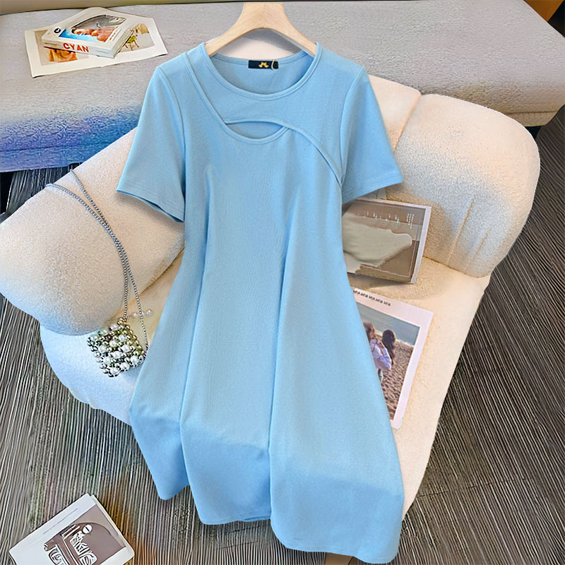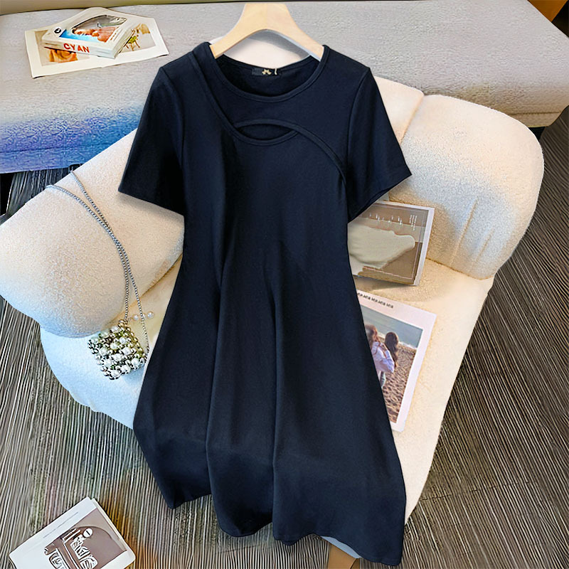 120-300斤加大码女装小心机镂空连衣裙夏季新款胖mm收腰显瘦