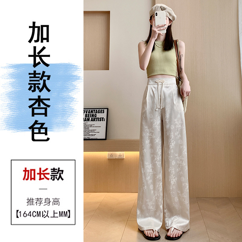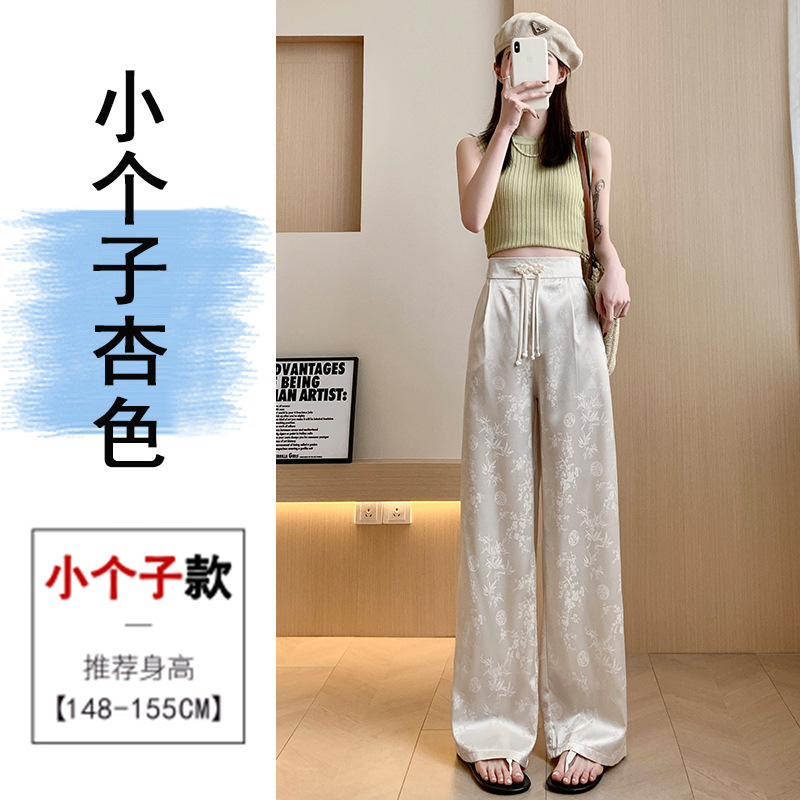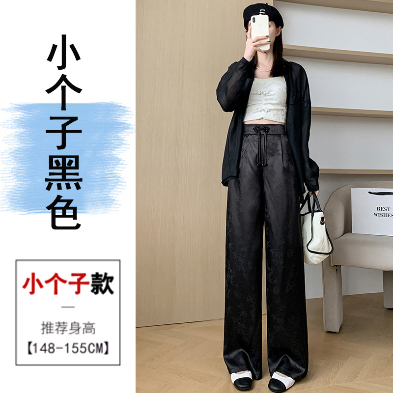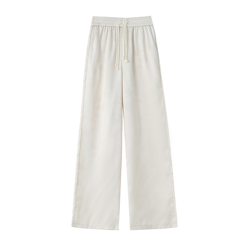 新中式国风盘扣白色裤子女夏薄款高腰垂感直筒冰丝缎面提花阔腿裤