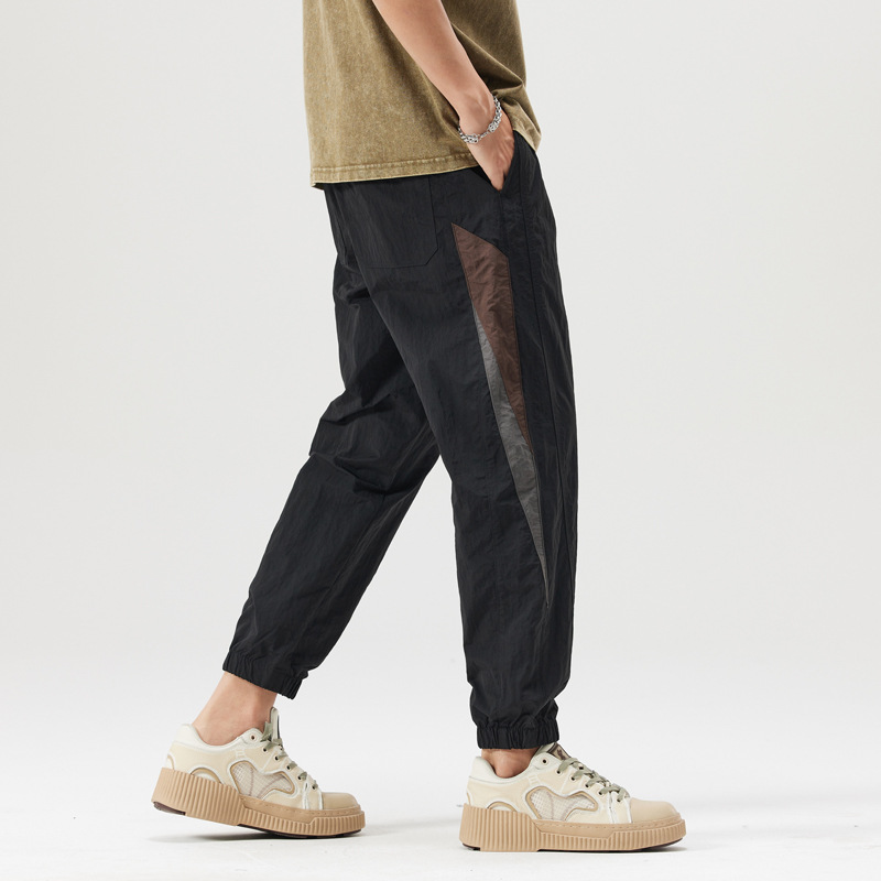 夏季薄款速干休闲裤男士潮牌拼接撞色束脚运动裤户外防水冲锋裤子