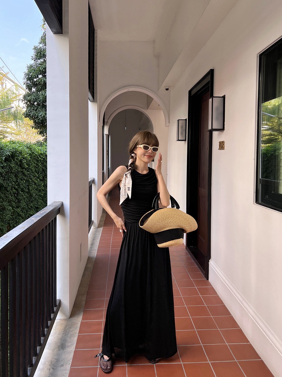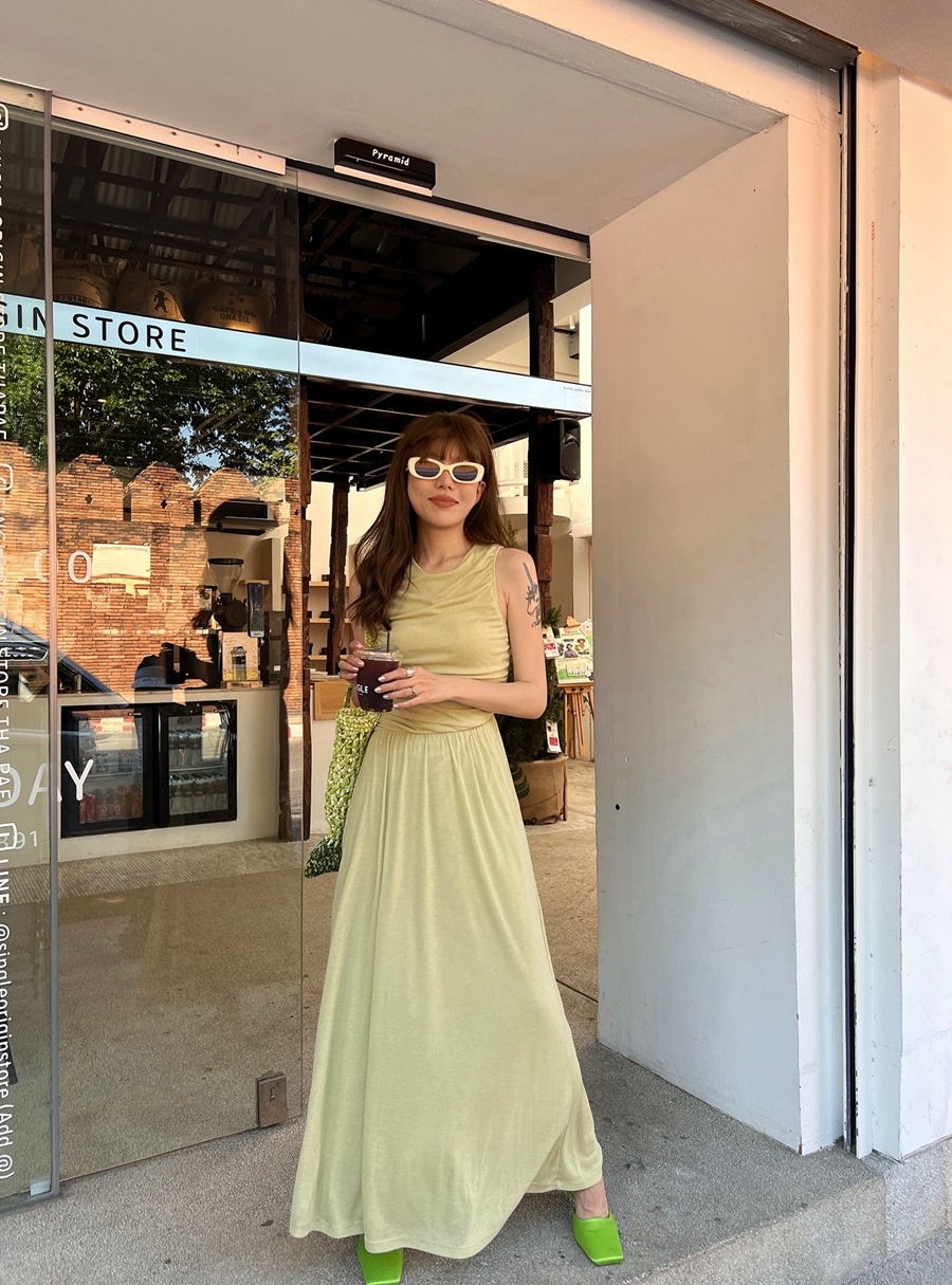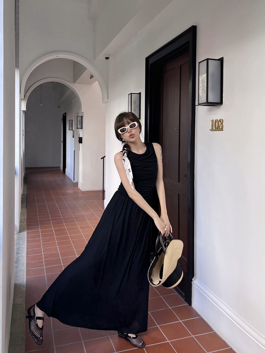UNITY MODE 褶皱显瘦连衣裙十三行夏季A字收腰显瘦高级内搭长裙子