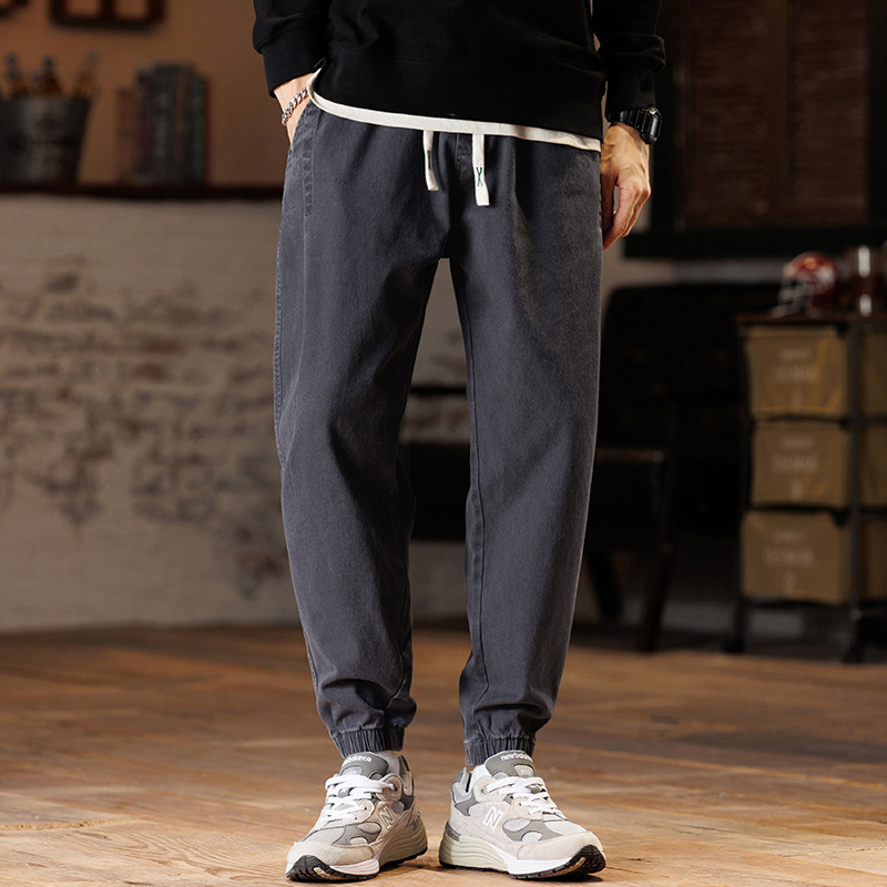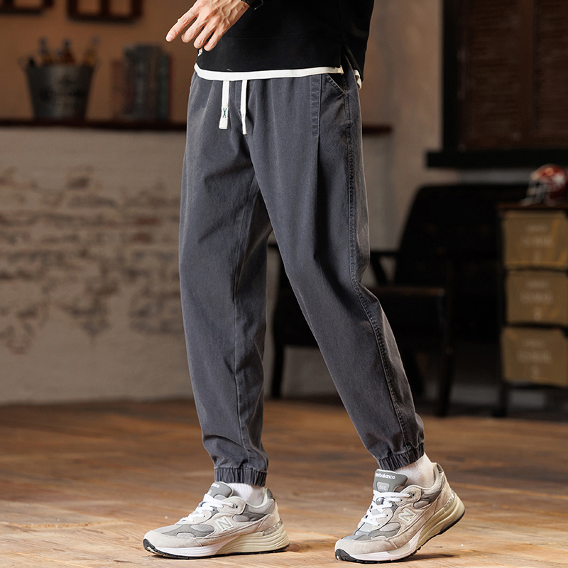 美式工装裤子男新款直筒宽松休闲裤阔腿束脚哈伦长裤