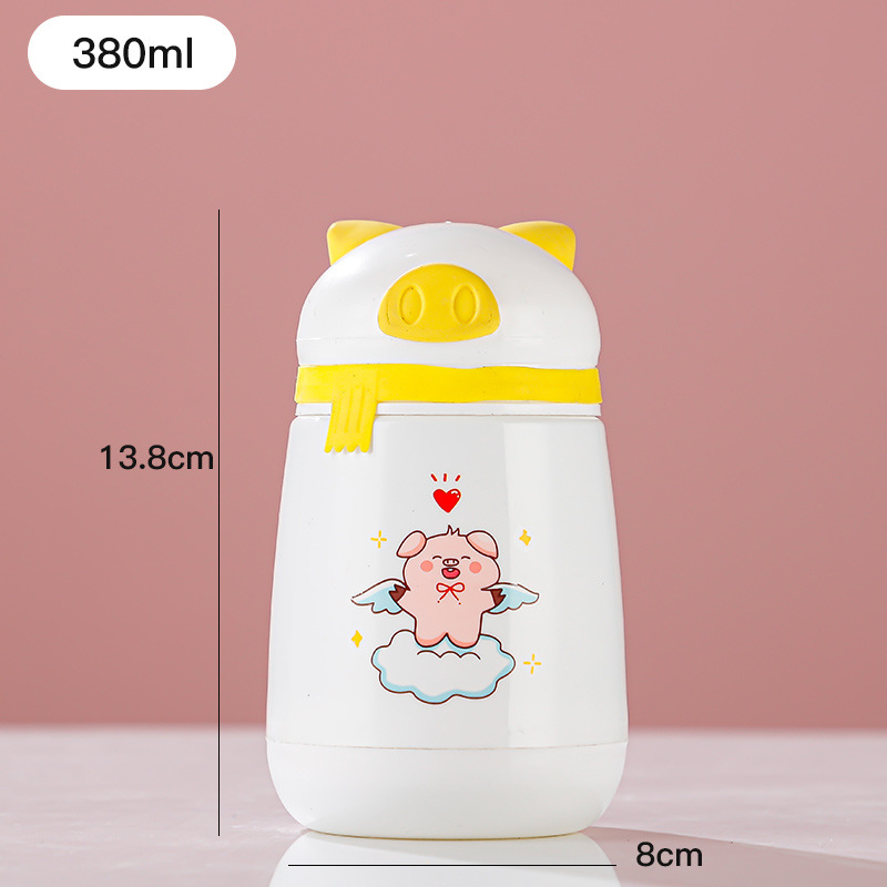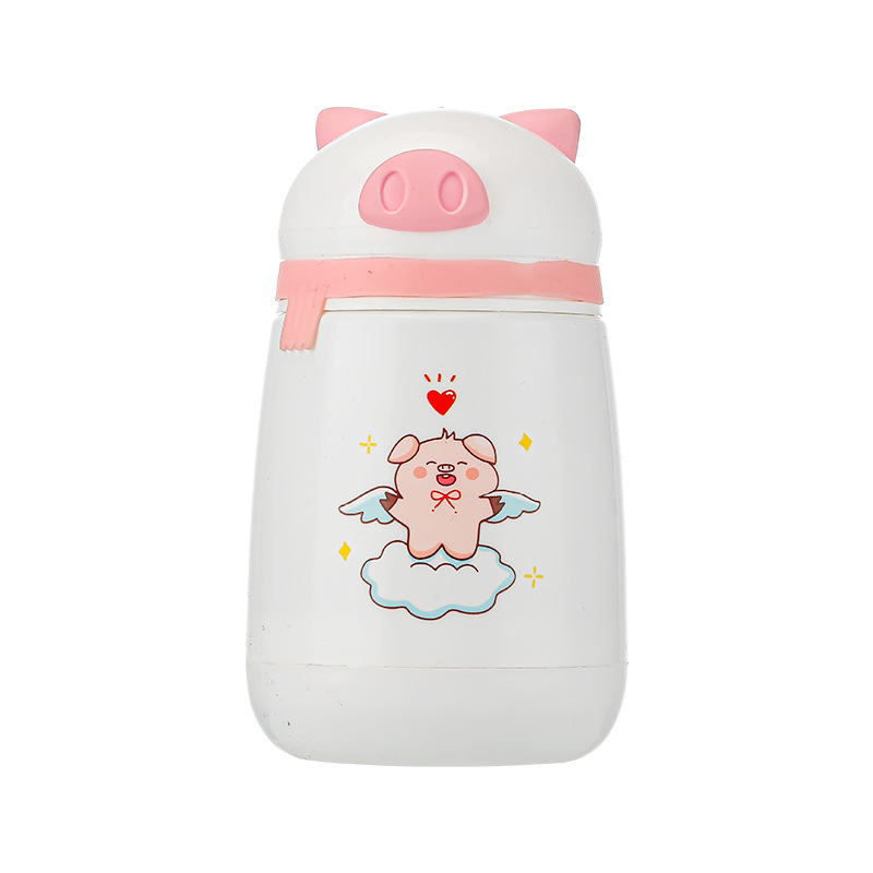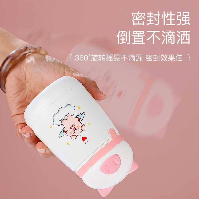 萌宠卡通猪猪杯双层玻塑杯便携式儿童杯玻璃水杯