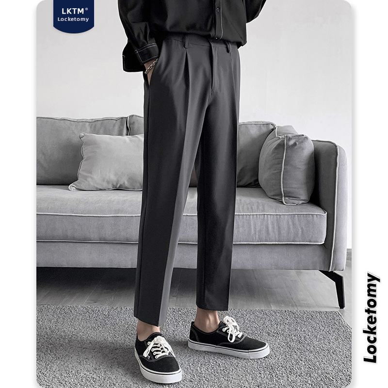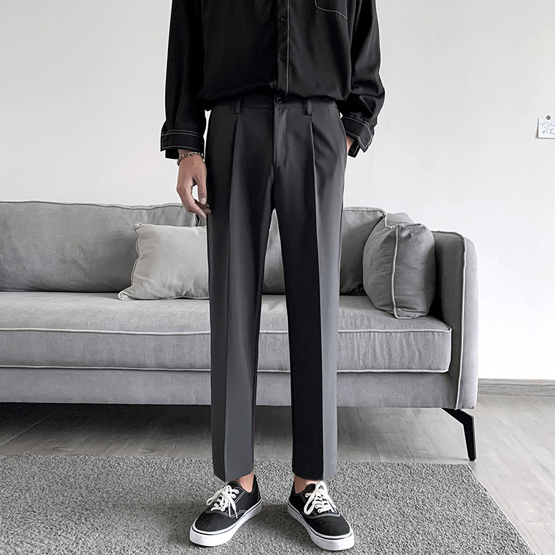 新款西装裤男宽松直筒长裤垂感九分休闲小西裤子