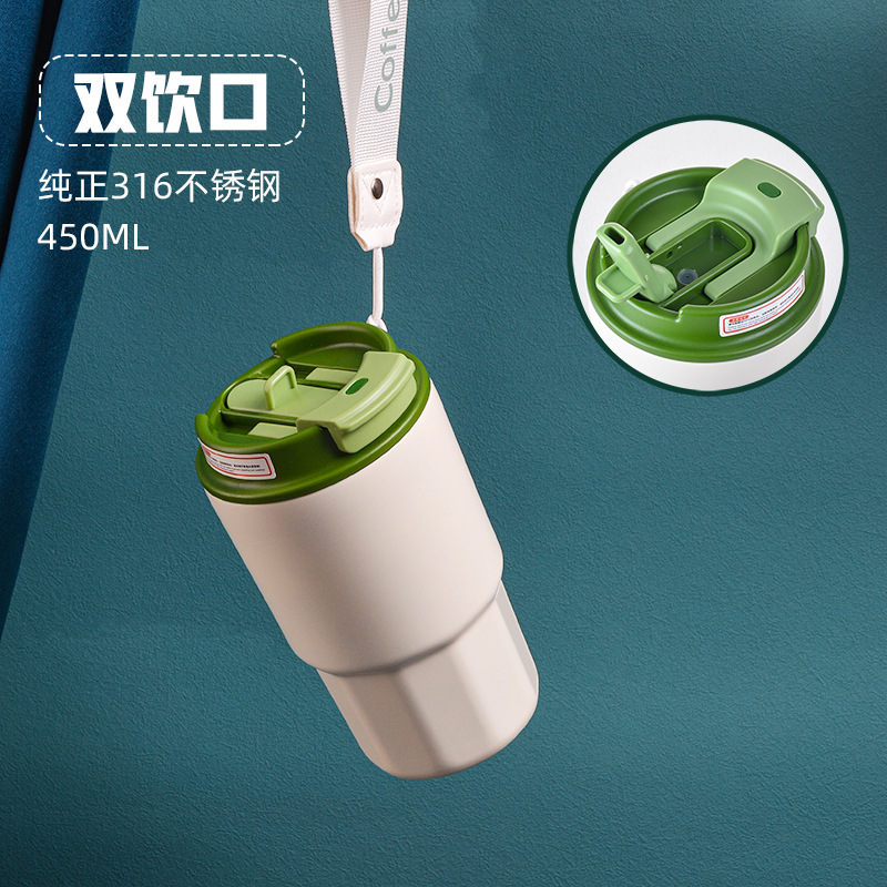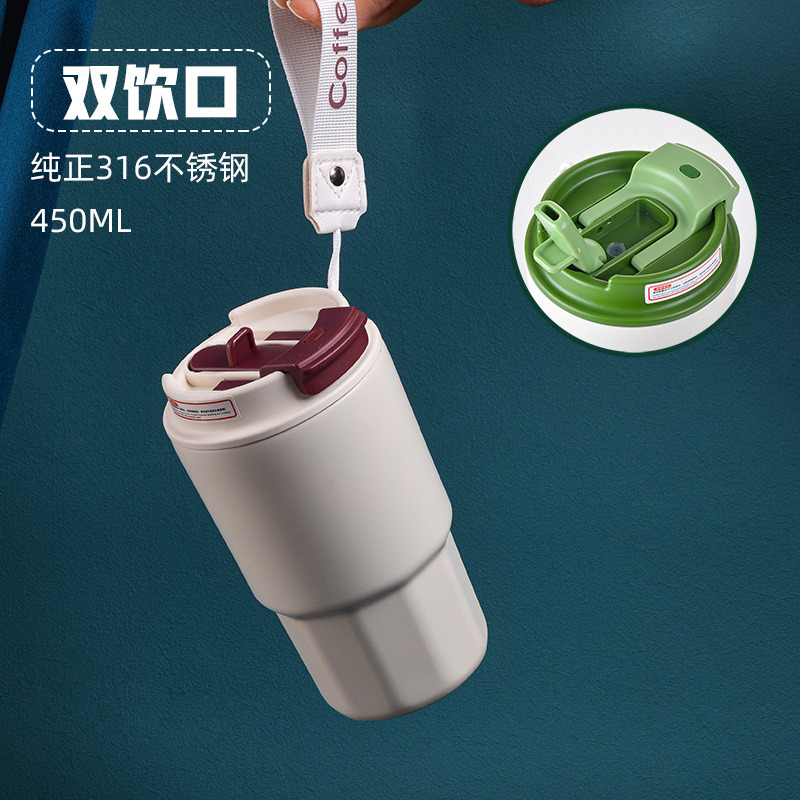 双饮咖啡杯316不锈钢保温杯便携随行水杯高颜值男士杯子
