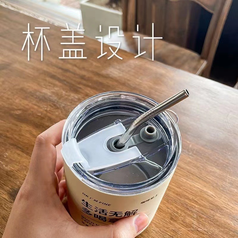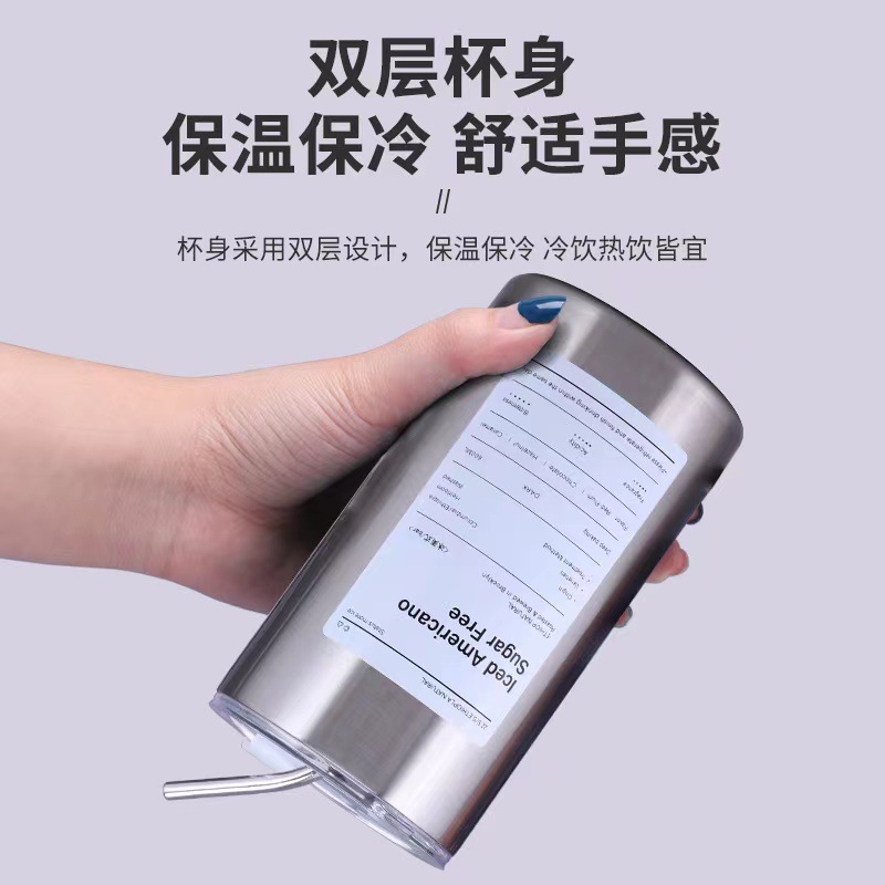 新款不锈钢冰美式咖啡杯304不锈钢真空双层带吸管杯拿铁保温杯子