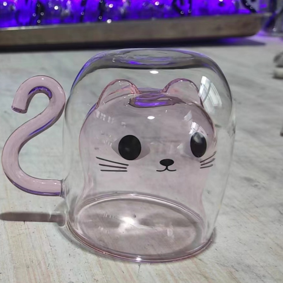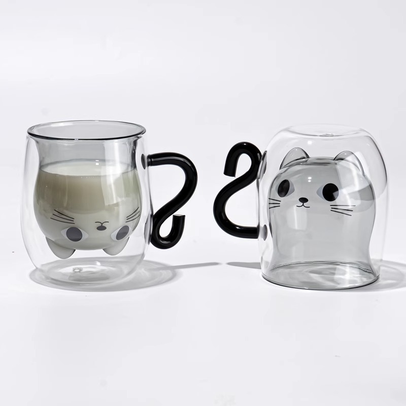猫咪双层杯耐高温牛奶杯女生创意礼物可爱杯子水杯家用早餐杯