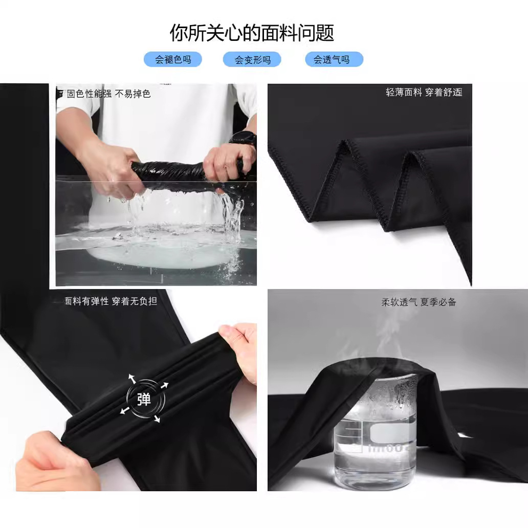 L-8XL锦纶冰丝裤弹力夏季休闲透气运动长裤束脚直筒裤大码小西裤