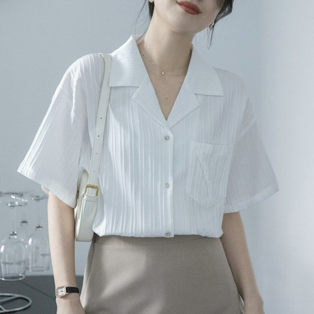 肌理感短袖衬衫女夏季新款韩版宽松小众高质感设计衬衣上衣