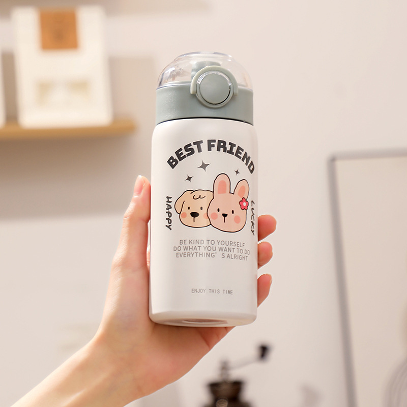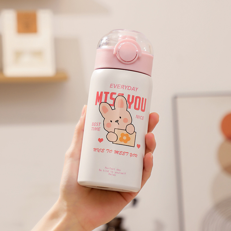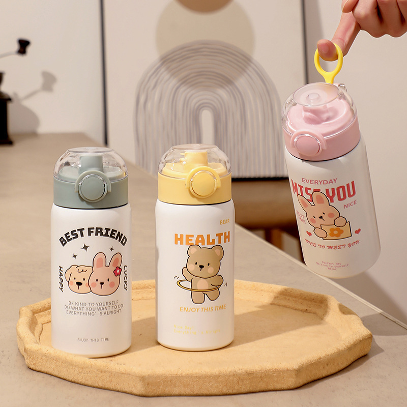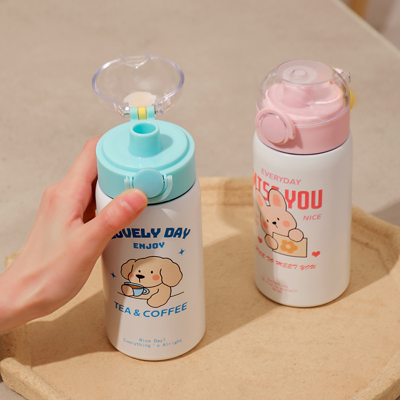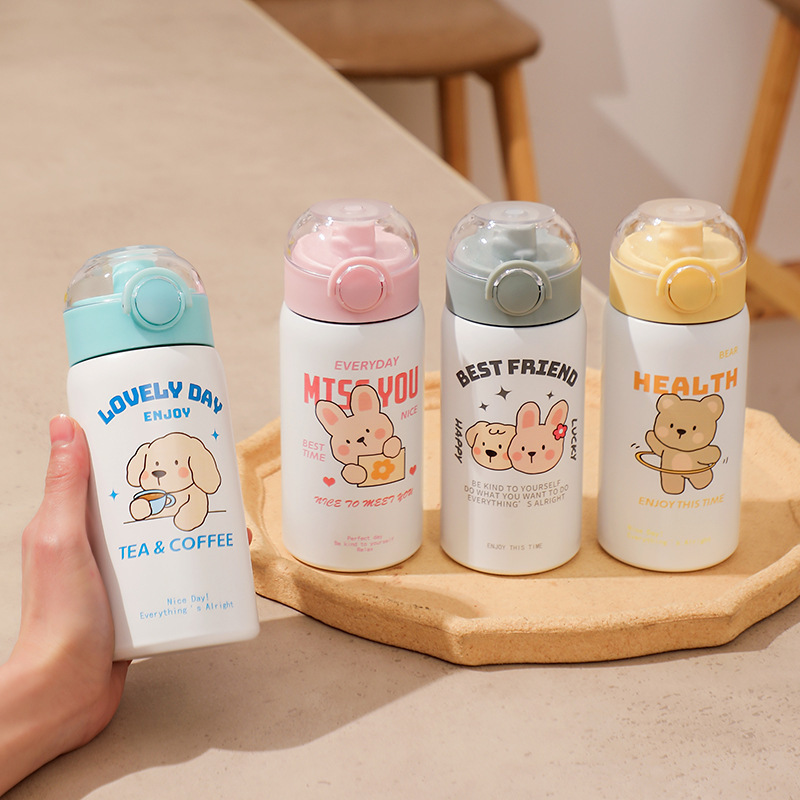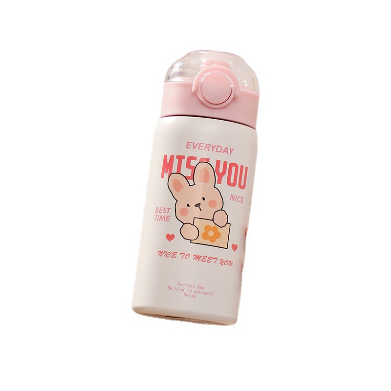 ins同款保温杯高颜值学生儿童水杯简约款弹跳吸管杯可爱礼品杯子
