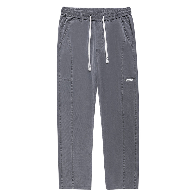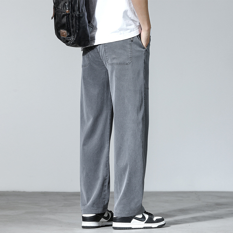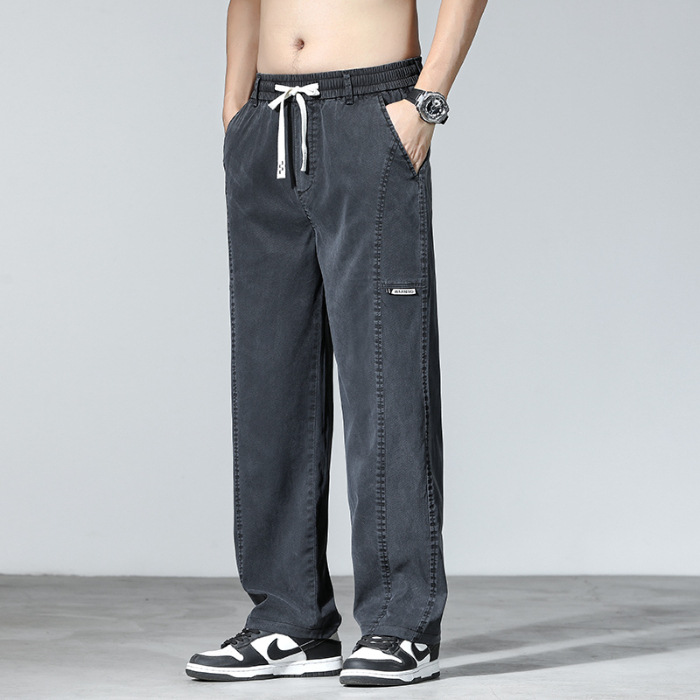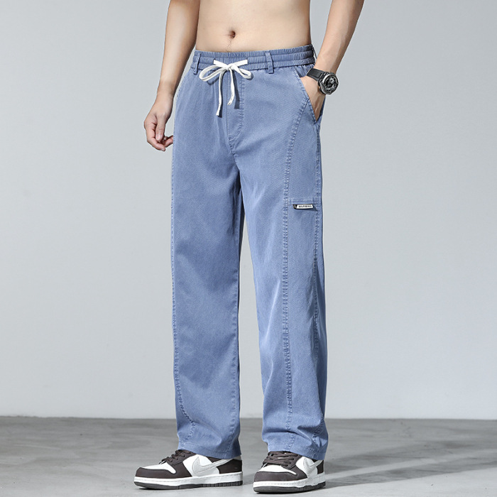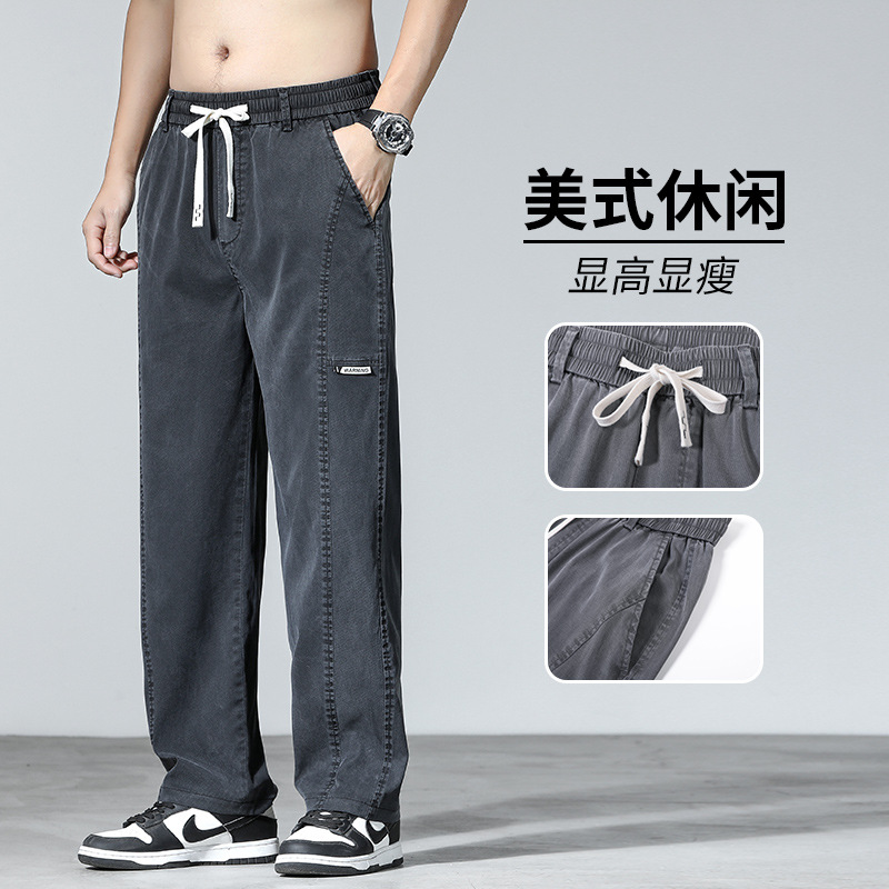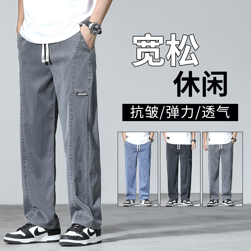 夏季薄款阔腿休闲裤男士直筒宽松潮莱赛尔牛仔天丝长裤子