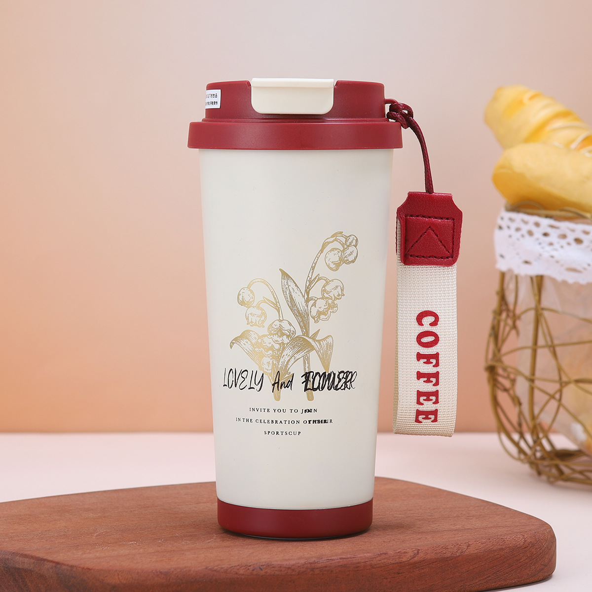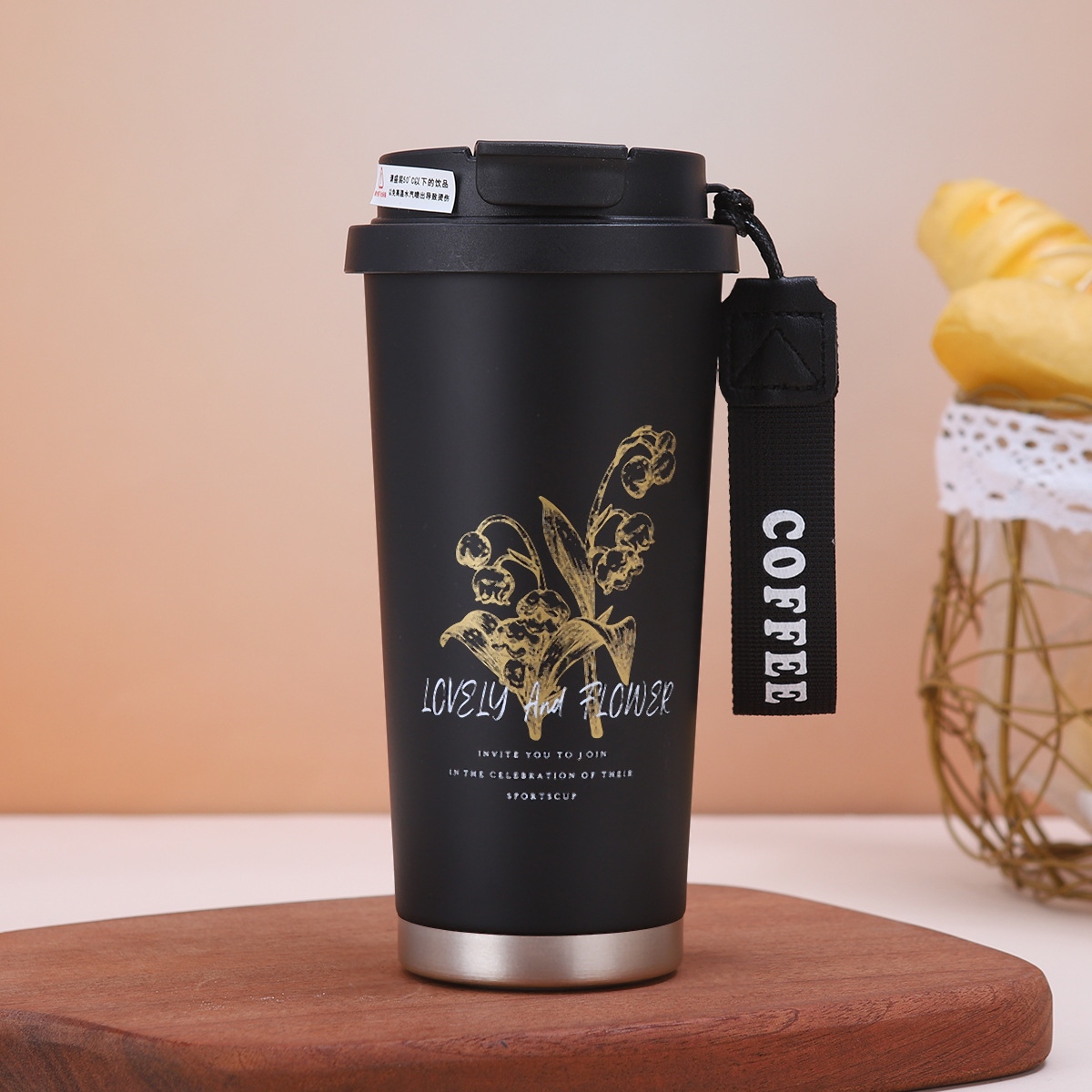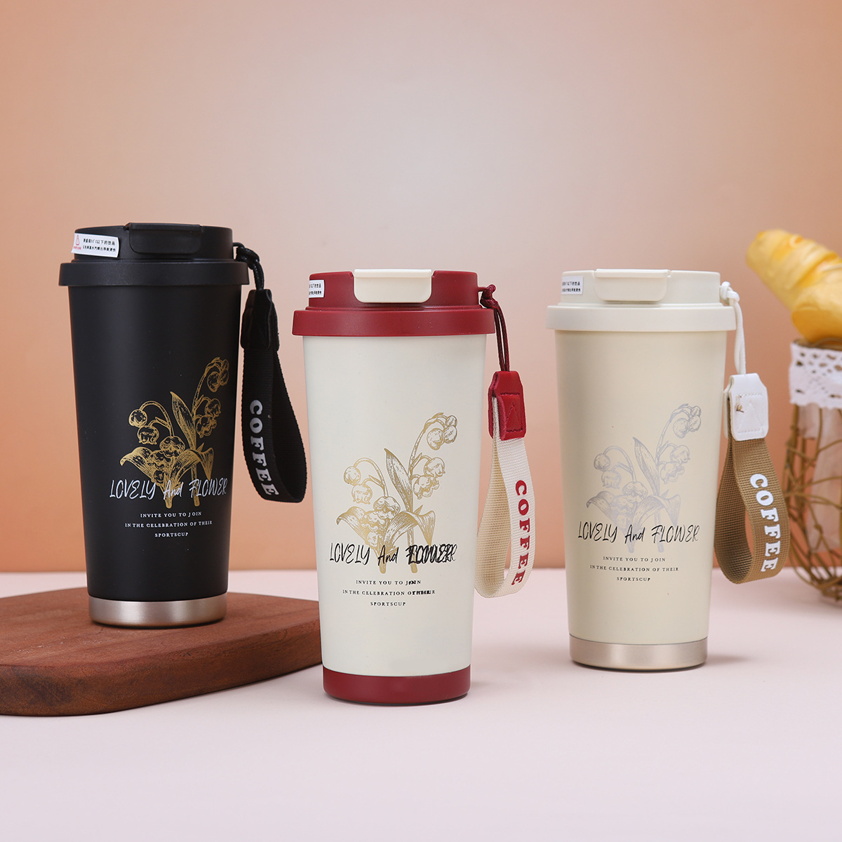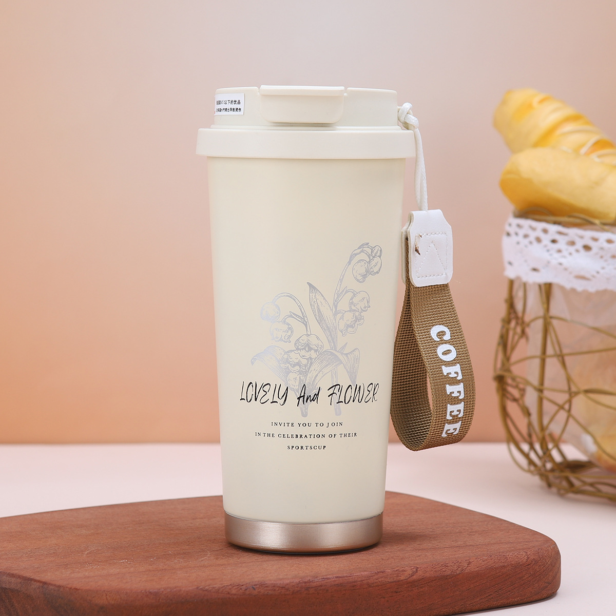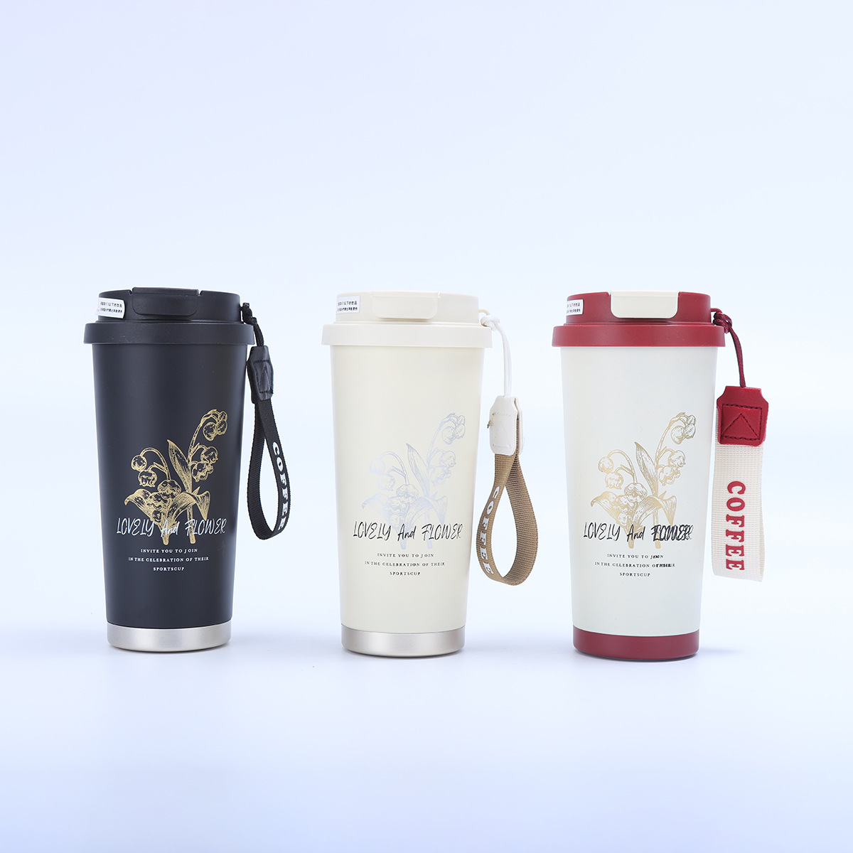 铃兰花咖啡杯316不锈钢双层真空保温杯户外便携提绳水杯