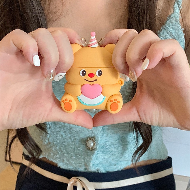 趣味爱心小熊适用airpods 2/3代苹果耳机壳airpods pro耳机套卡通