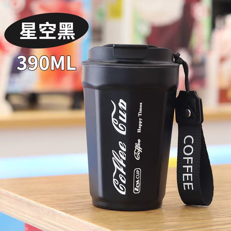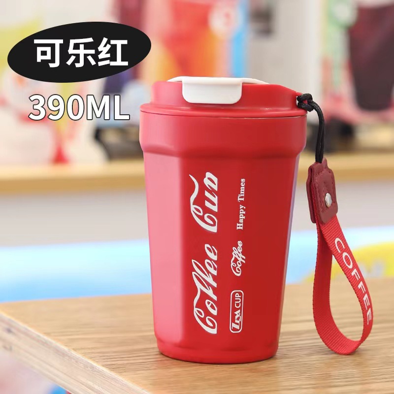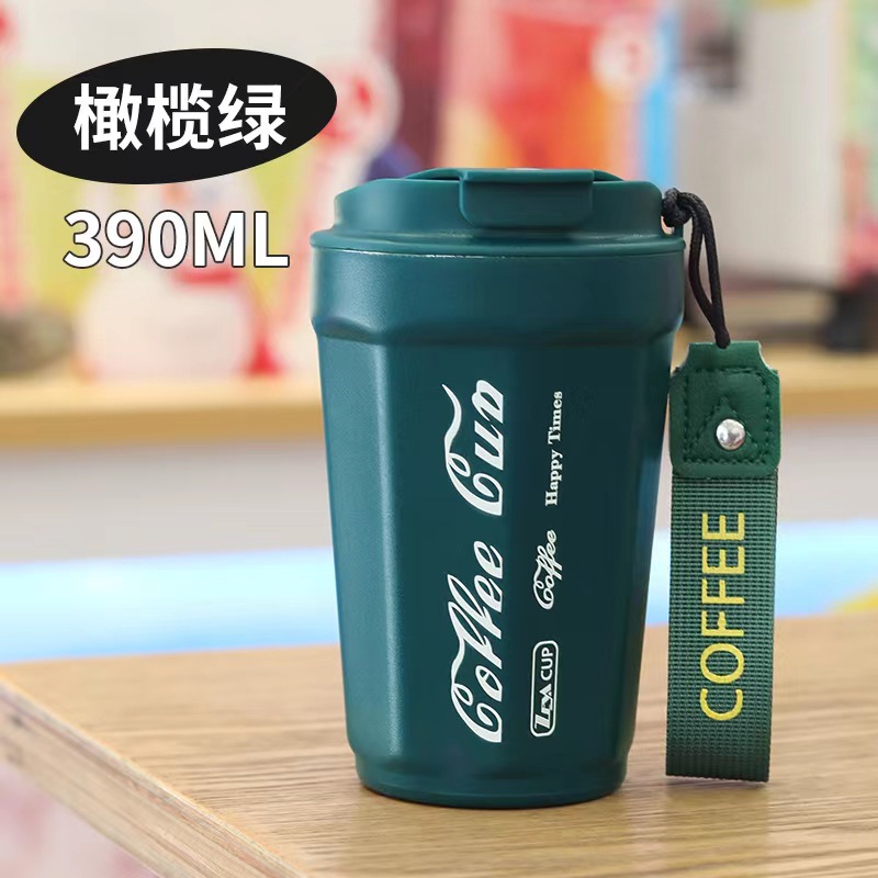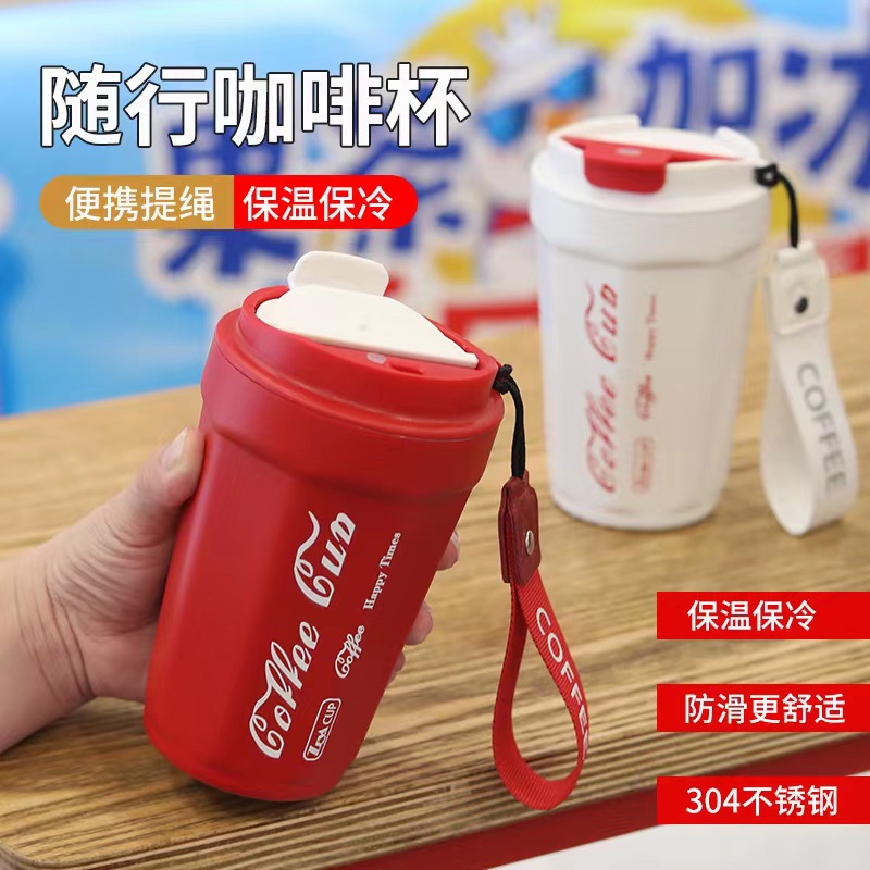 新款304不锈钢可乐咖啡杯提绳便携八角随手杯高颜值学生保温杯