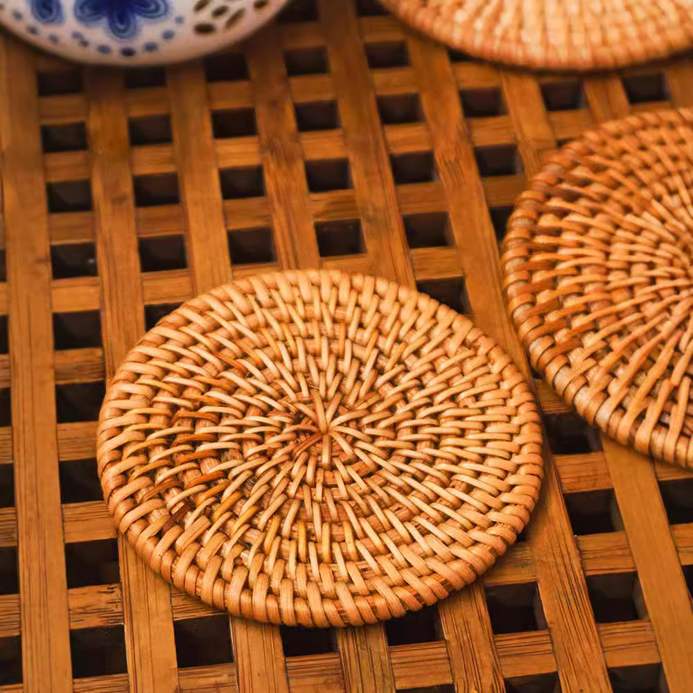 藤编杯垫碗碟隔热垫套装茶壶垫菜盘