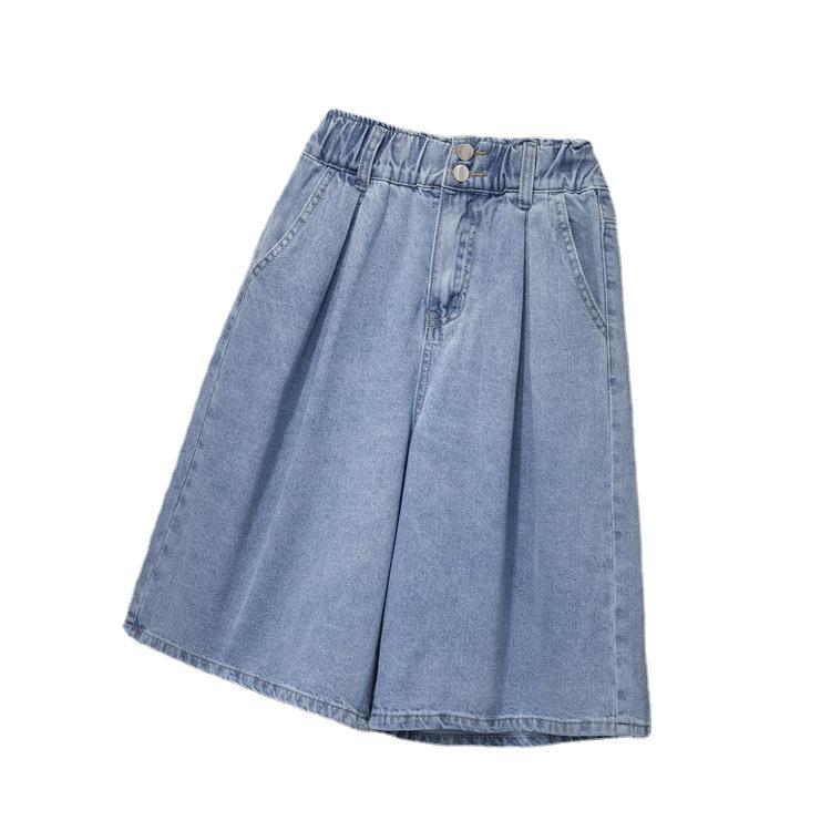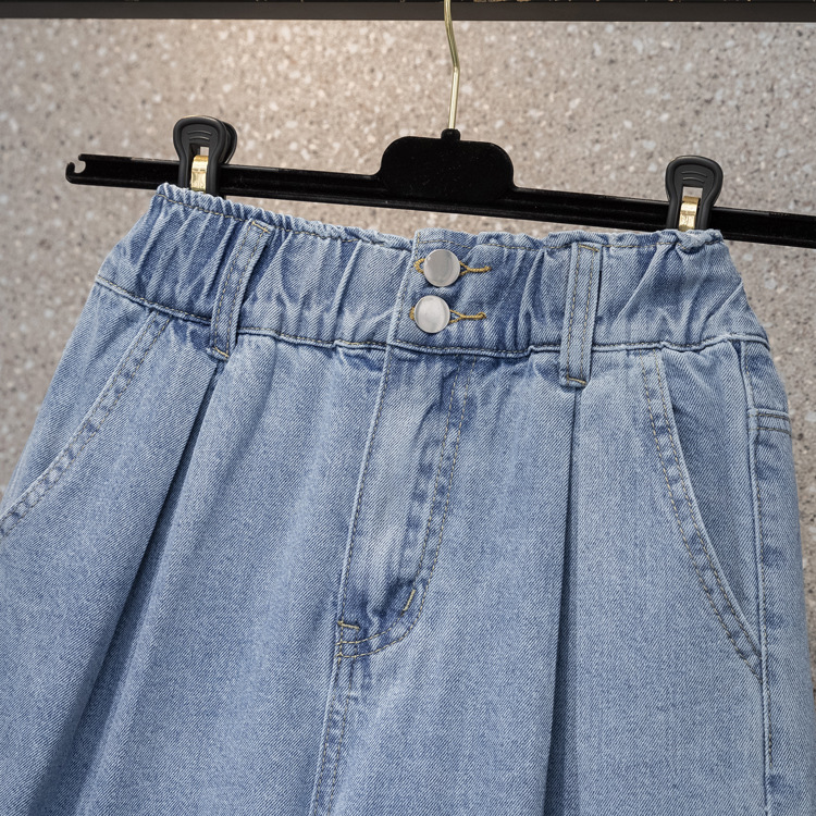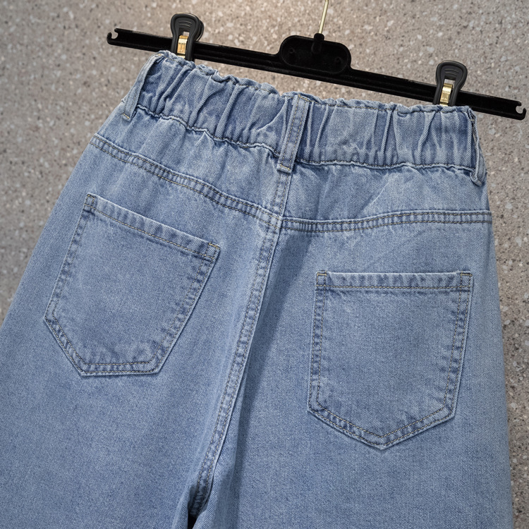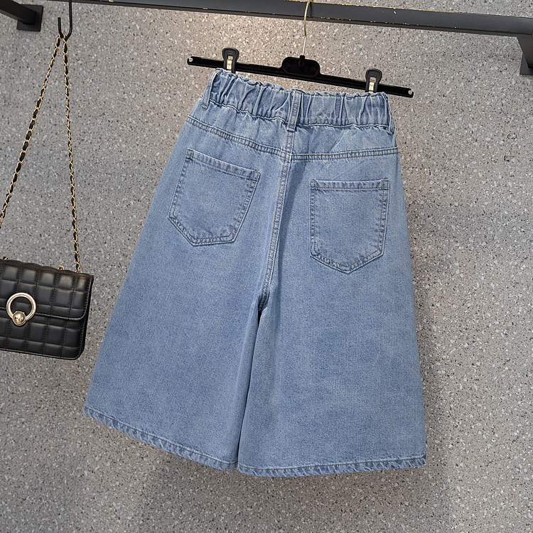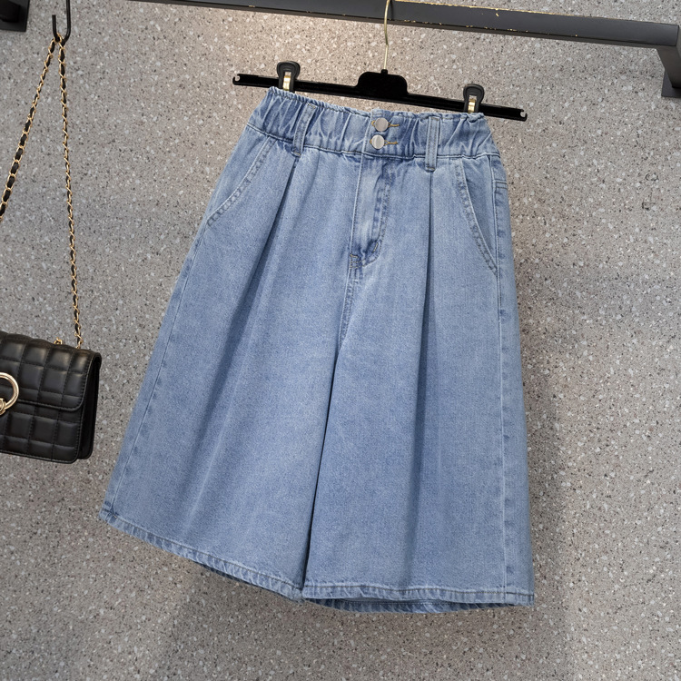 大码女装夏季新款松紧高腰显瘦五分中裤胖mm宽松直筒牛仔短裤