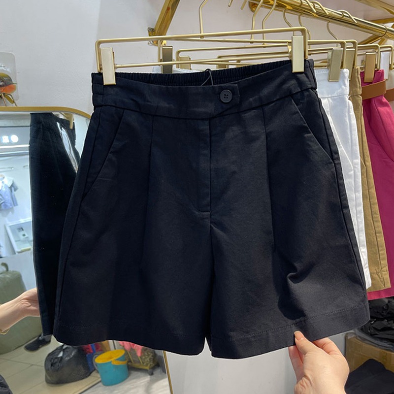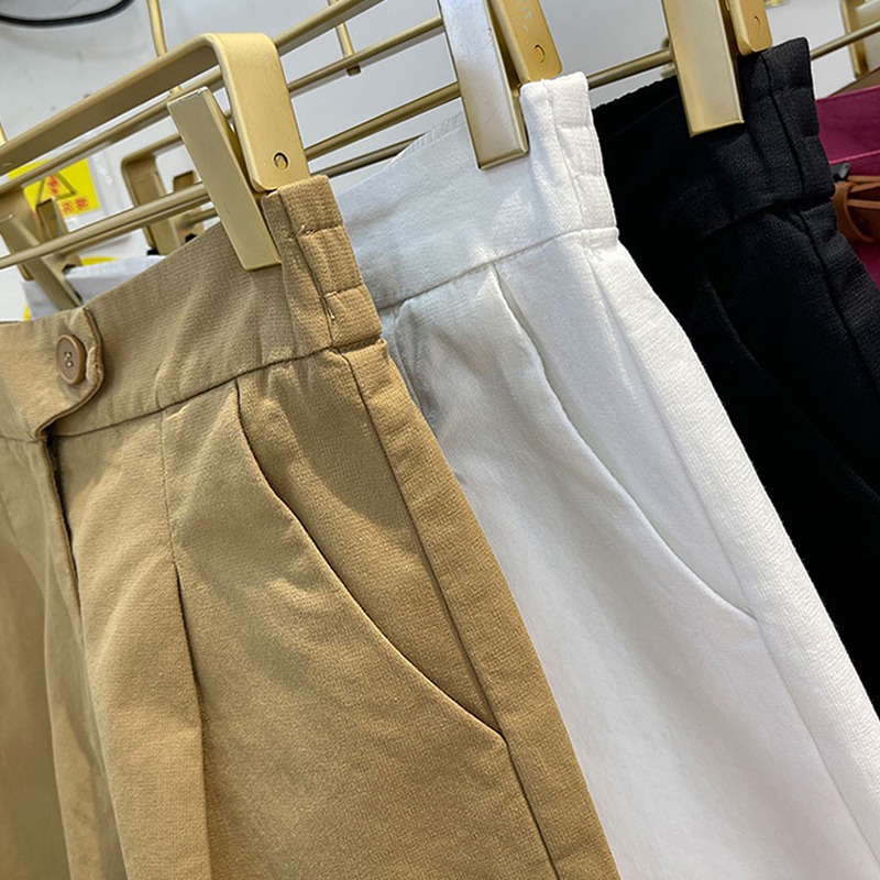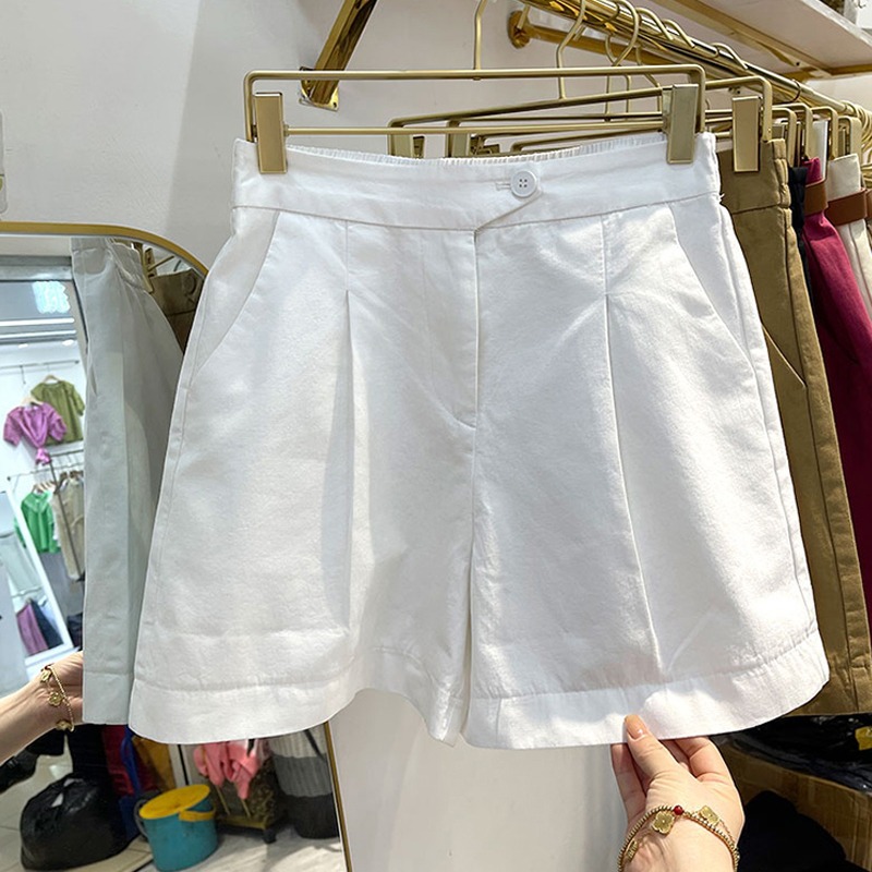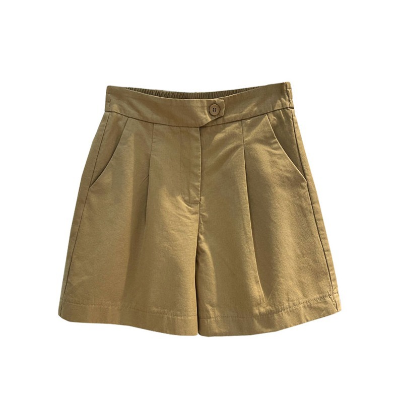 卡其色大码短裤女夏季夏季高腰显瘦遮肚子宽松a字阔腿休闲五分裤