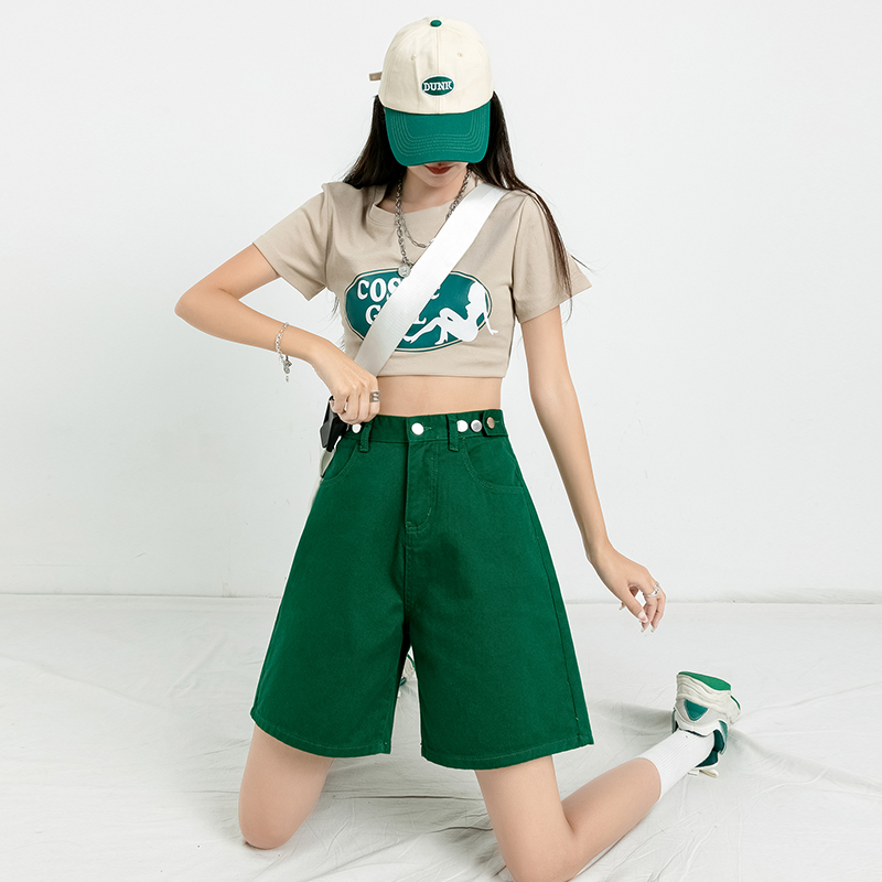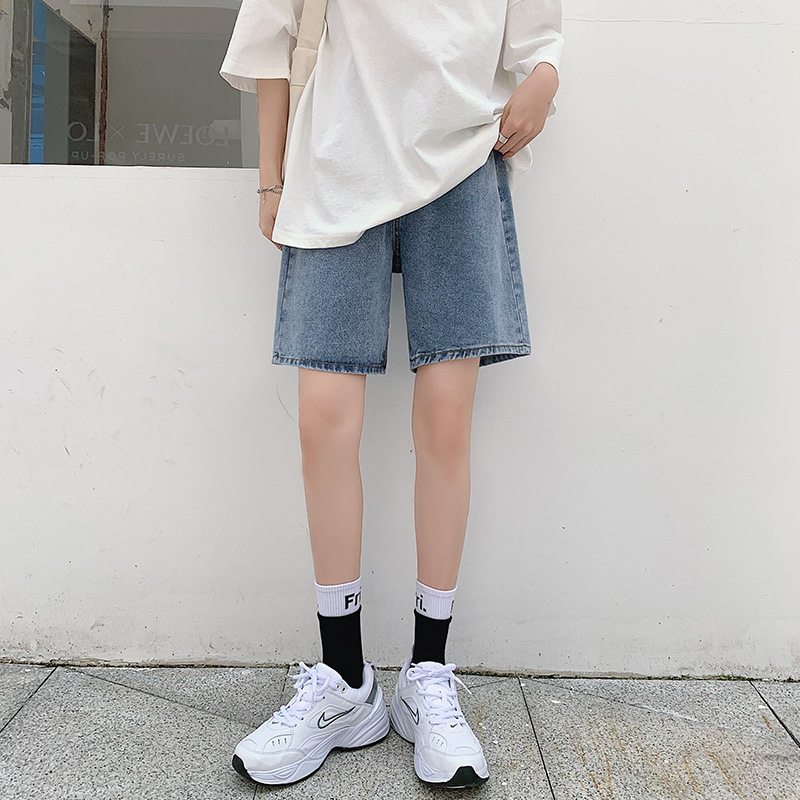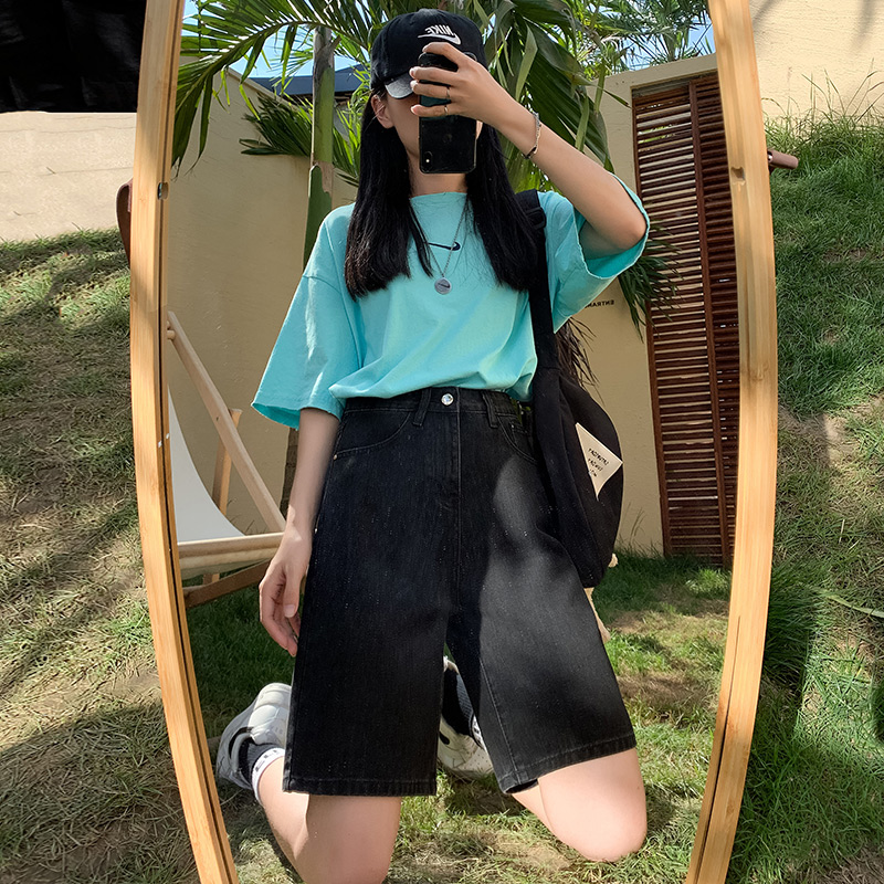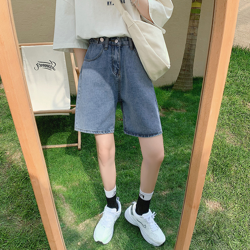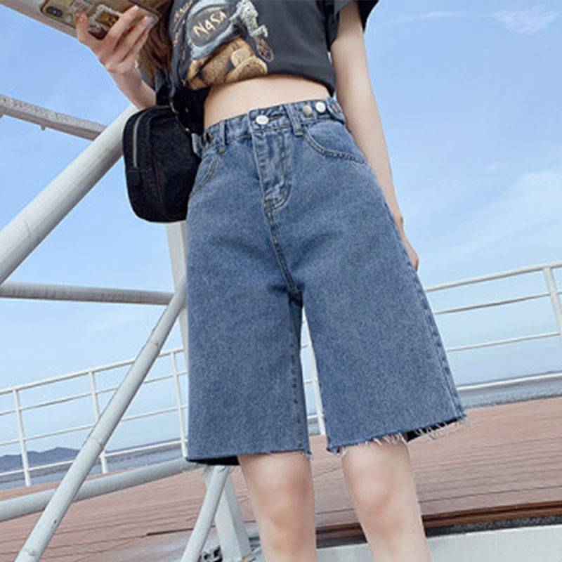 五分牛仔短裤女夏季年新款辣妹高腰薄款宽松小个子阔腿裤五分