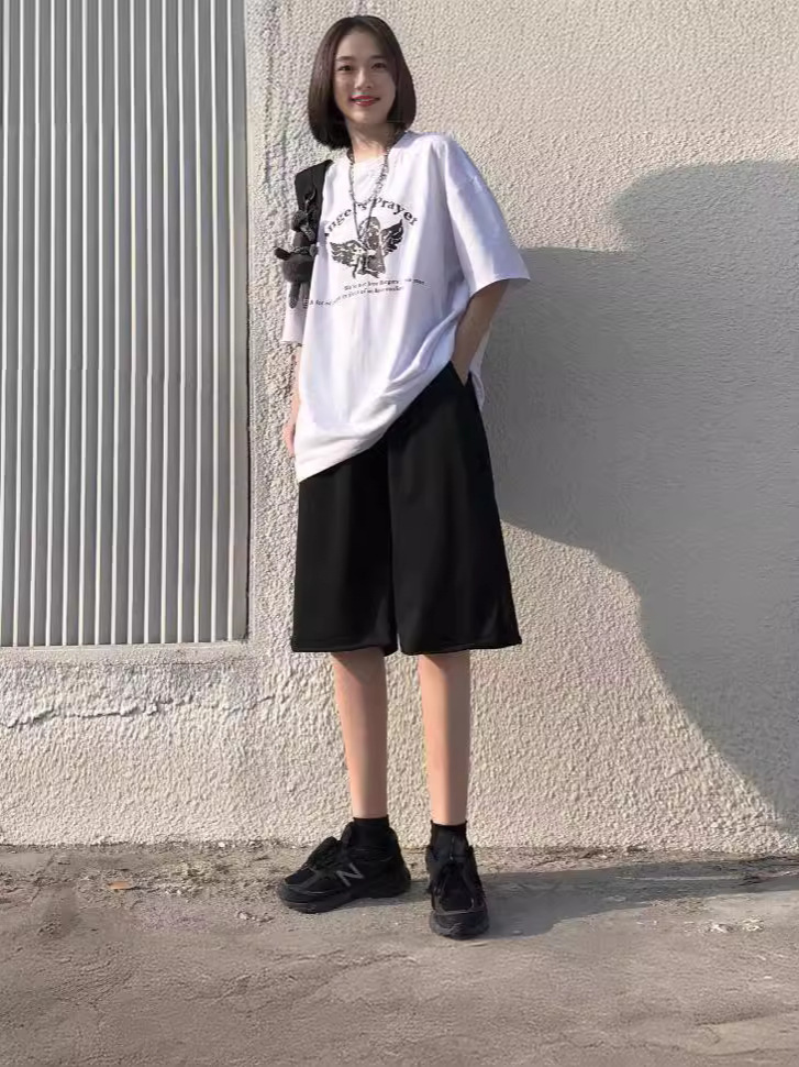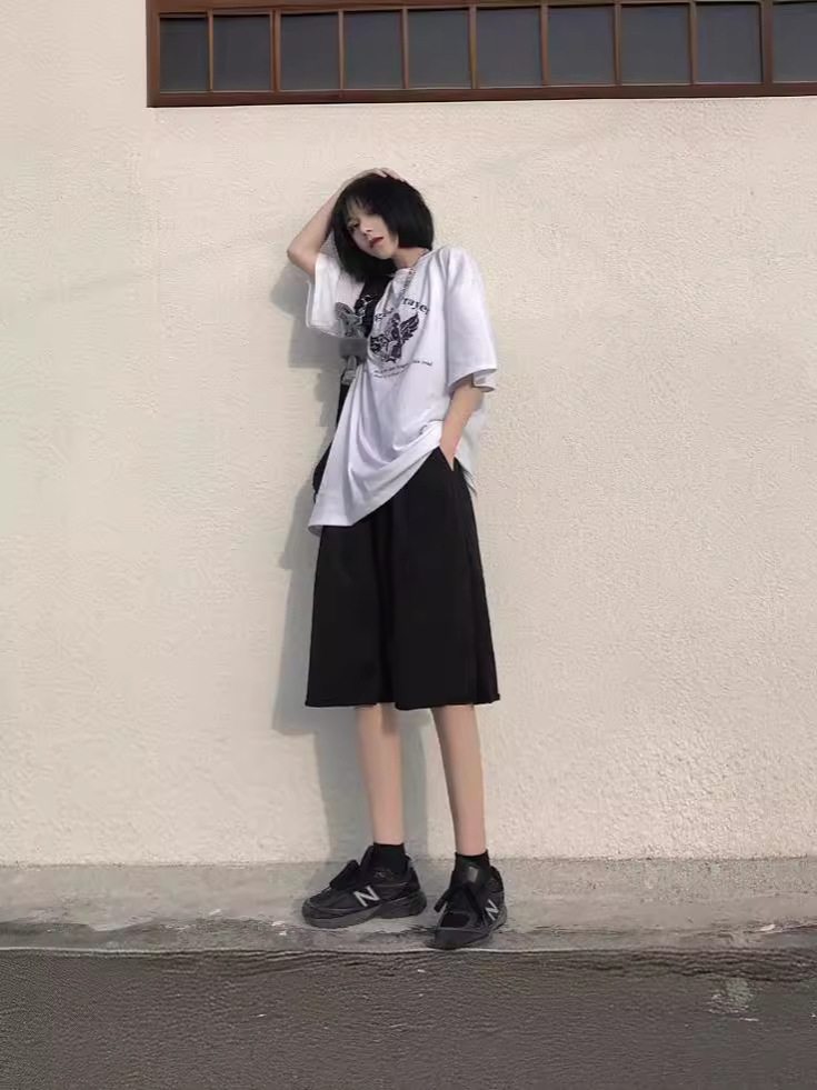 新款夏季韩版ins裤子潮宽松直筒阔腿裤五分短裤高腰休闲裤女