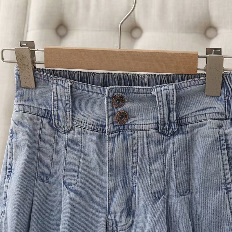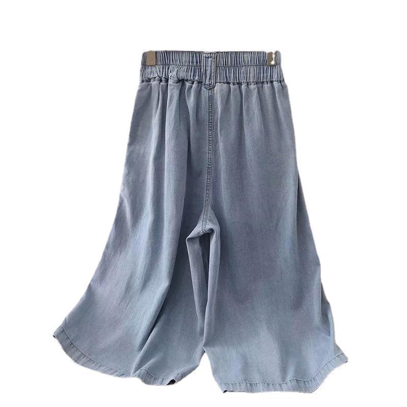 夏季薄款高腰牛仔阔腿中裤过膝女凉爽垂感夏裤7分裤裙女
