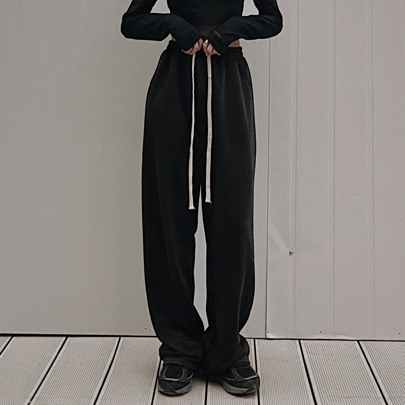 运动休闲裤女ins黑色直筒阔腿裤高腰垂感宽松长裤裤子潮