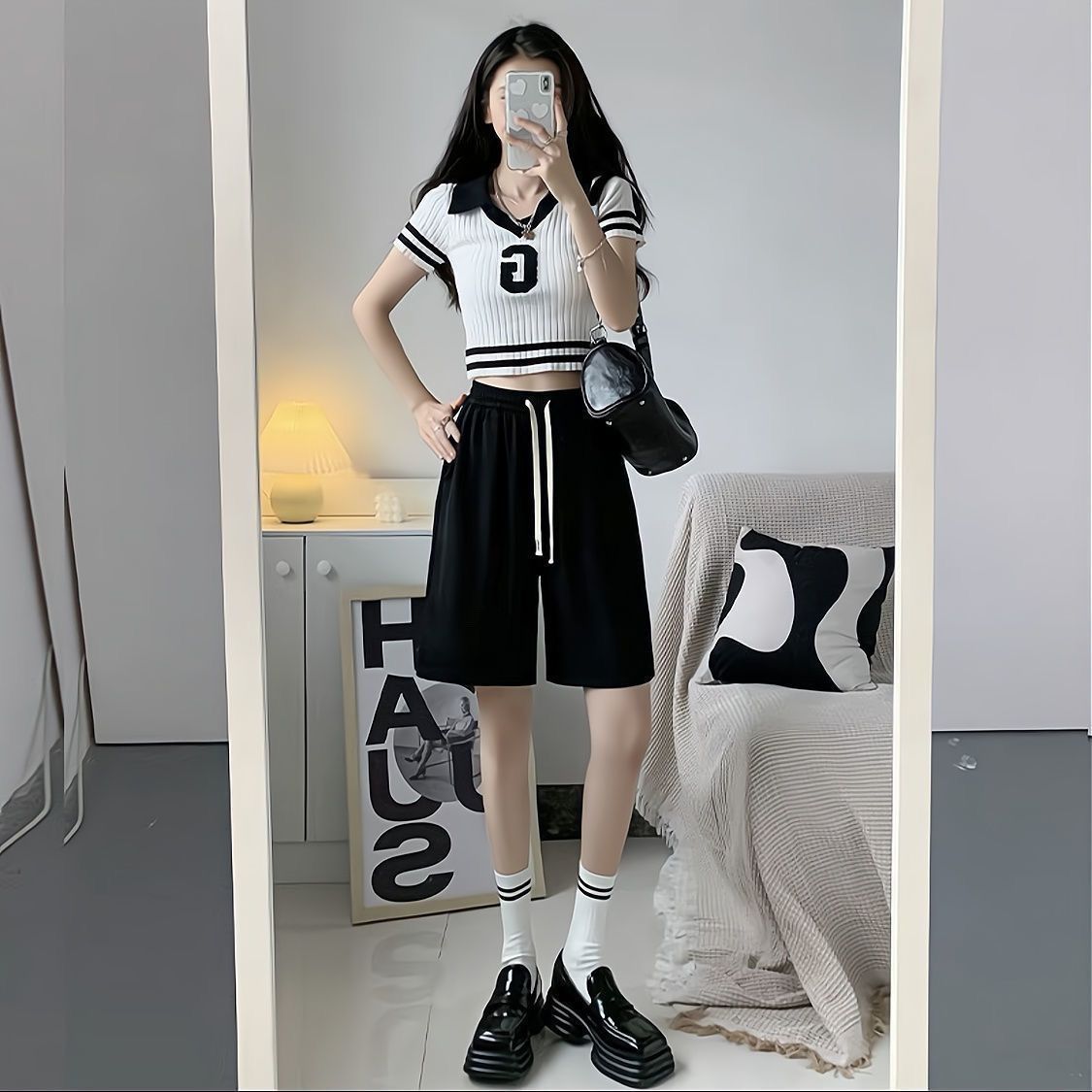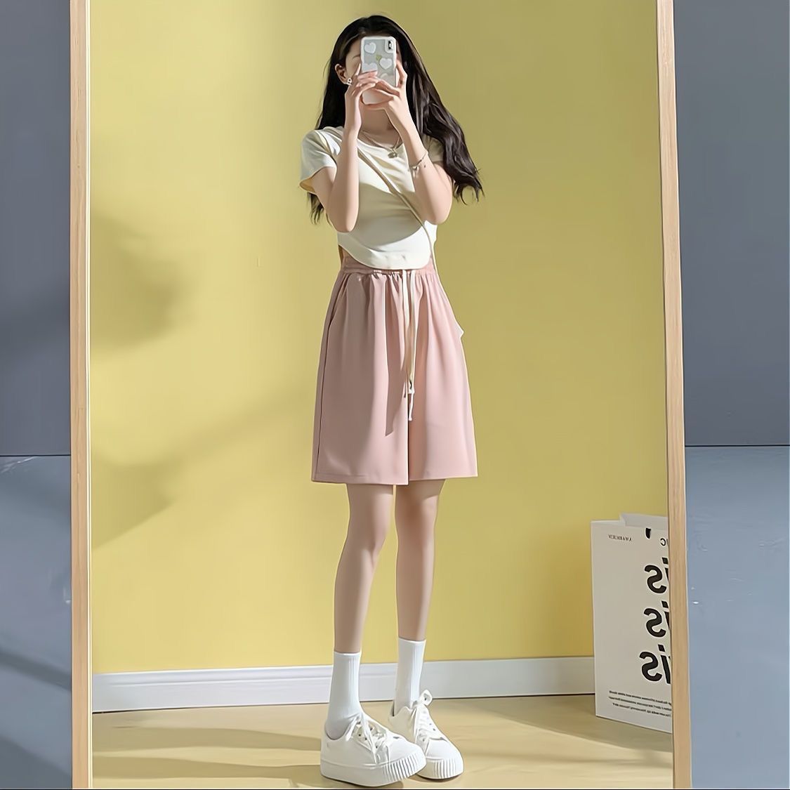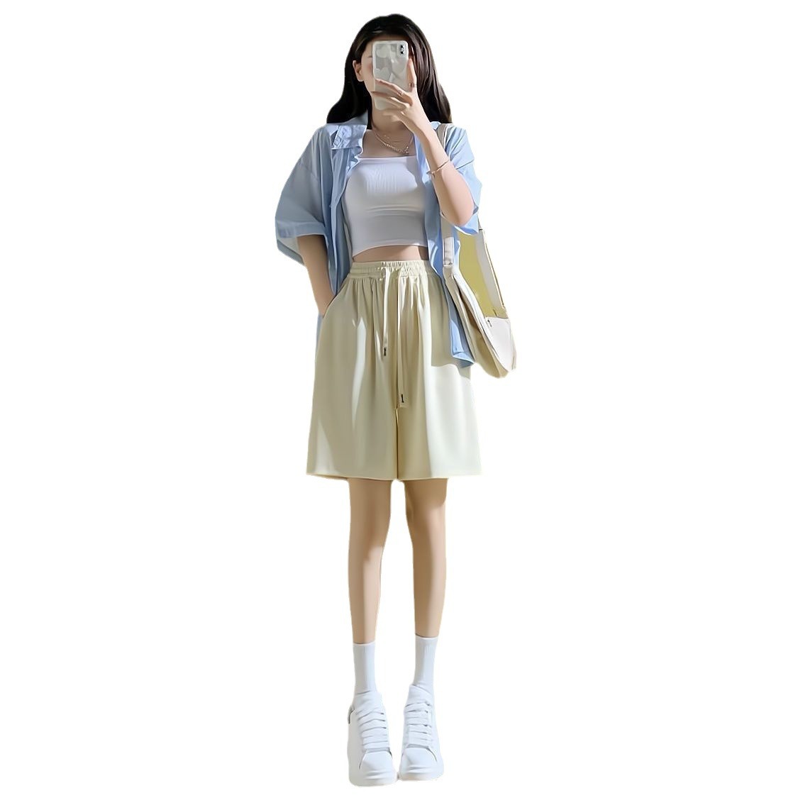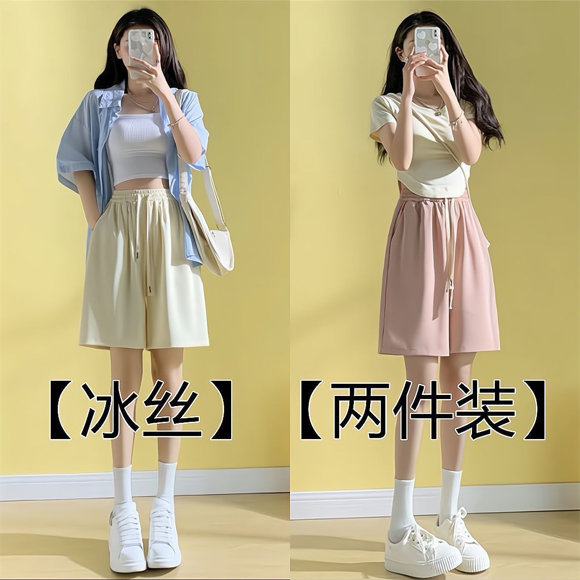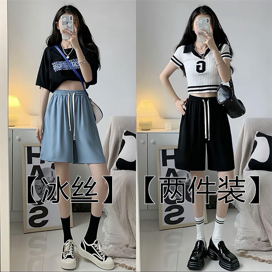 单/两件装 冰丝运动短裤女夏季薄款高腰宽松休闲小个子阔腿五分裤