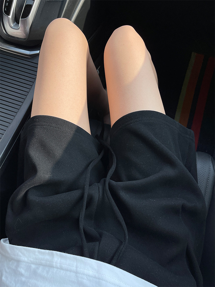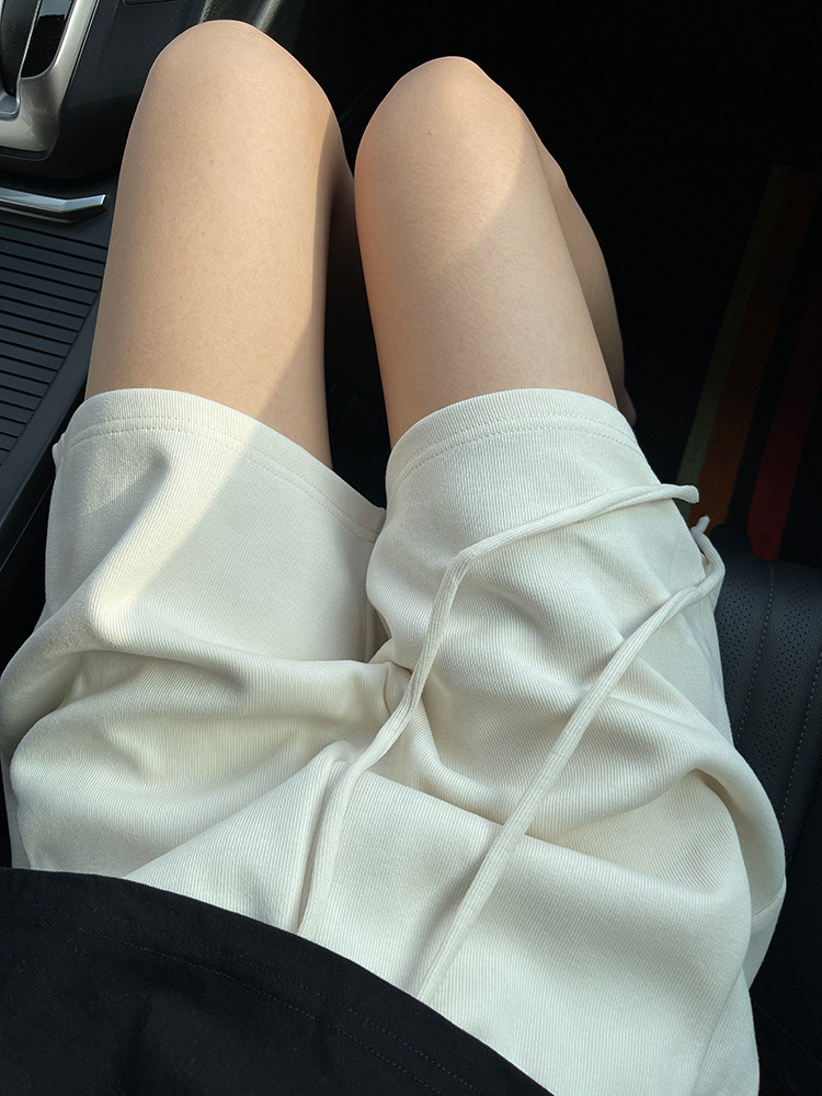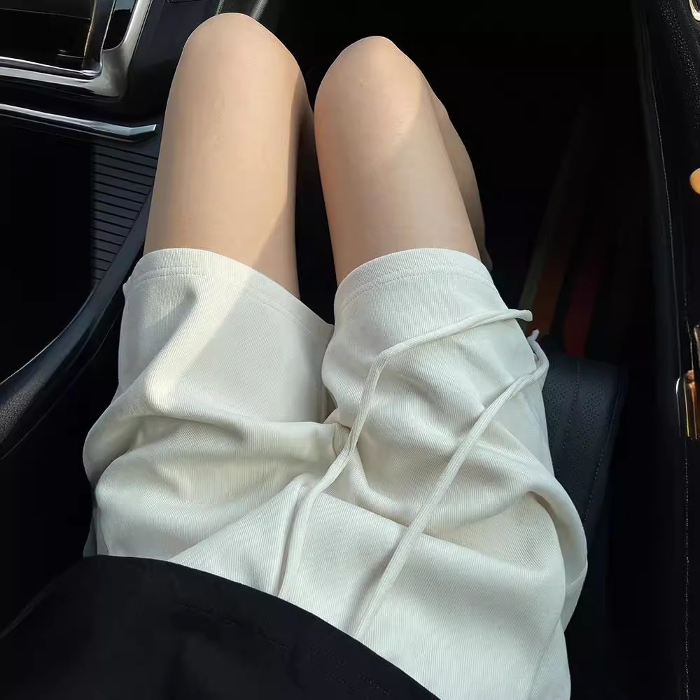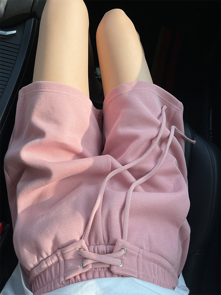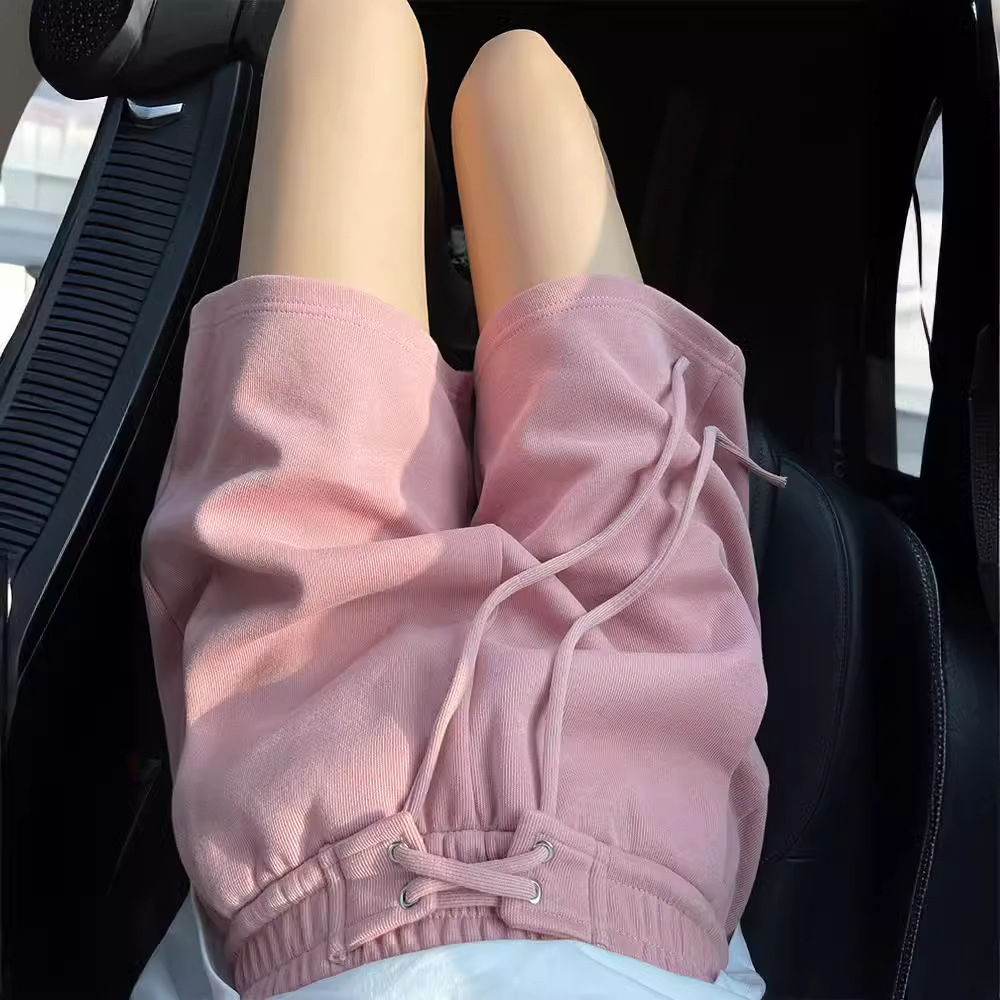 粉色运动短裤女夏季薄款小个子高腰阔腿裤休闲中裤抽绳美式五分裤