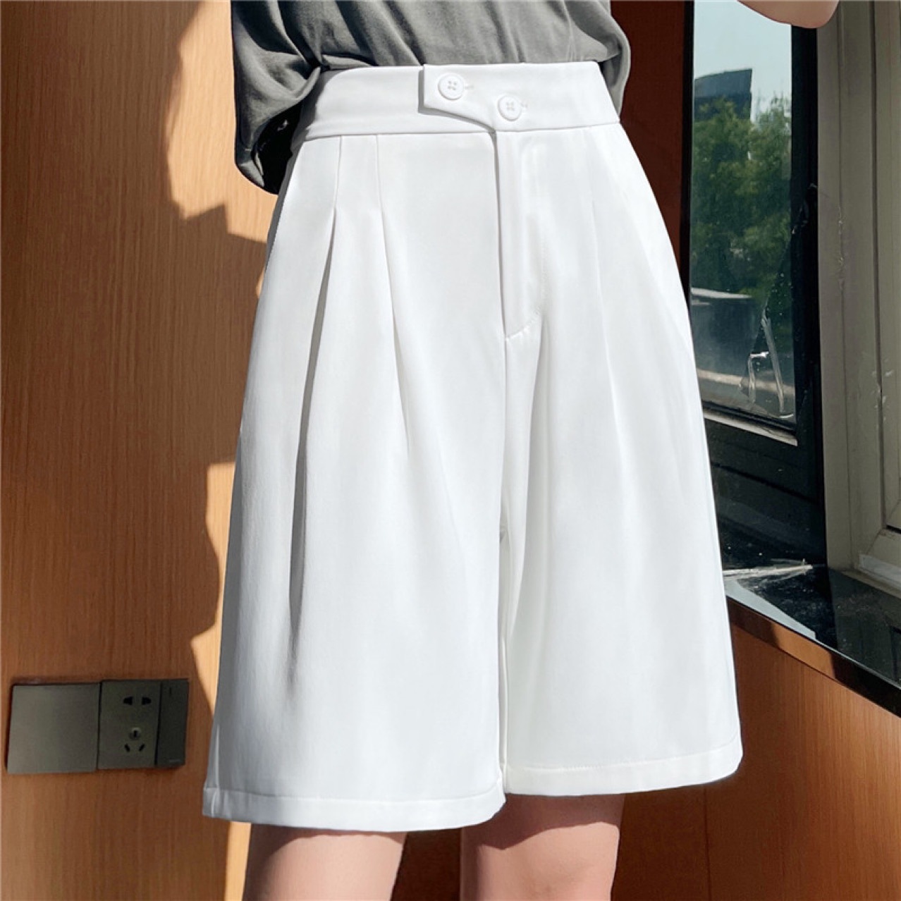 高品质五分裤西装裤女夏季薄款宽松阔腿裤胖MM大码高腰短裤休闲裤
